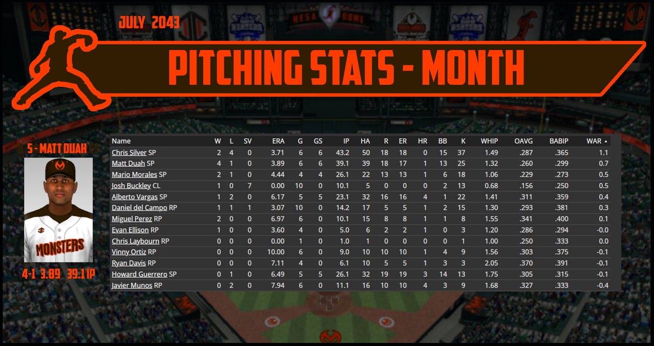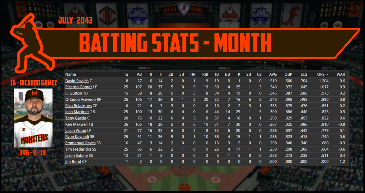 Mesa plays well enough throughout the month to remain in first place at the end of July.
