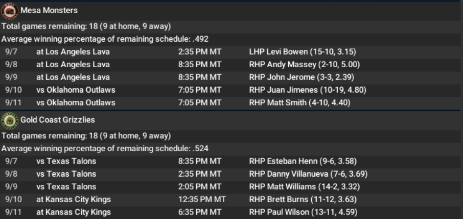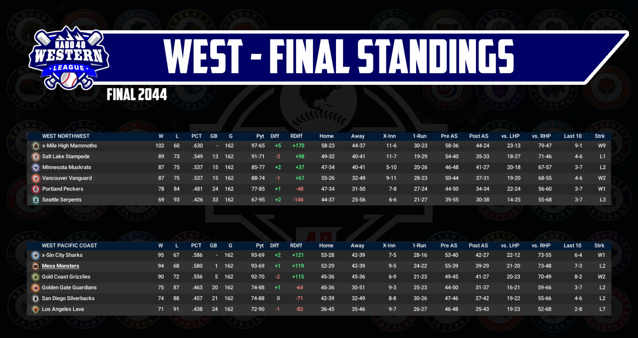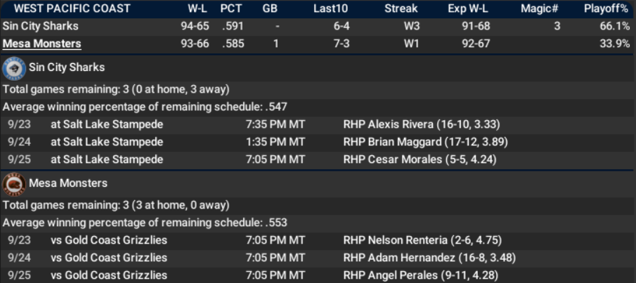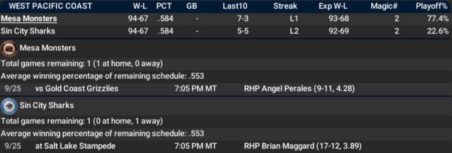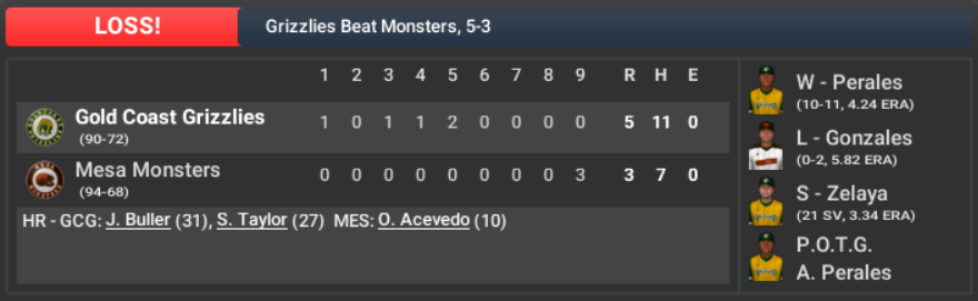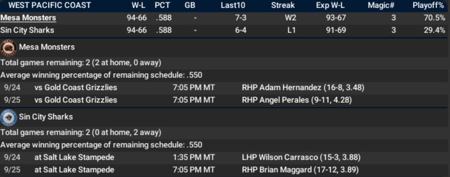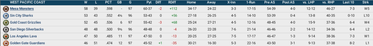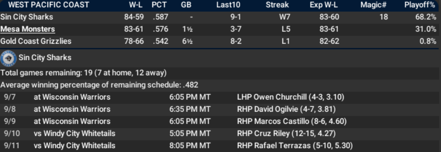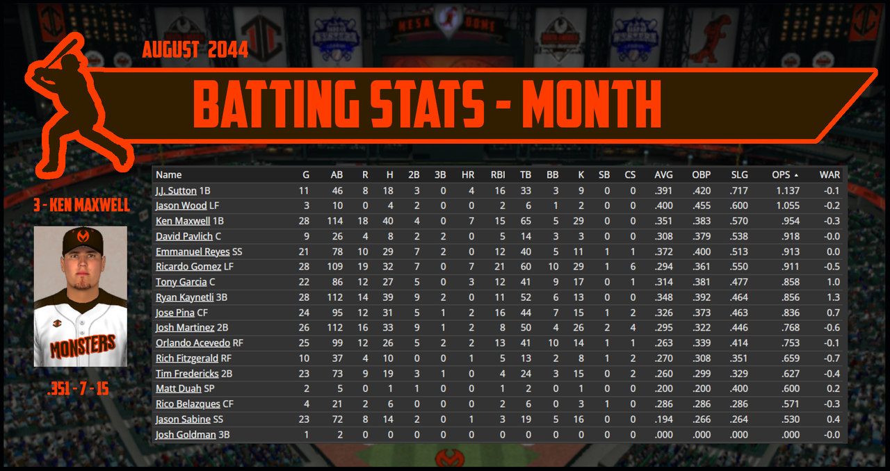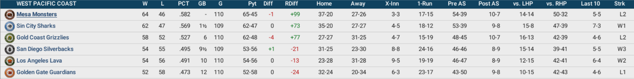With a 2 1/2 game lead entering into September, the Monsters drop 5 straight games against playoff caliber teams. The losing streak saw Mesa fall to 2nd place, trailing the Sin City Sharks.