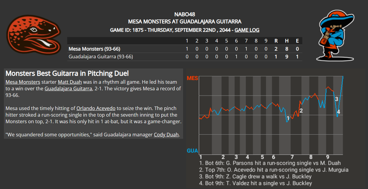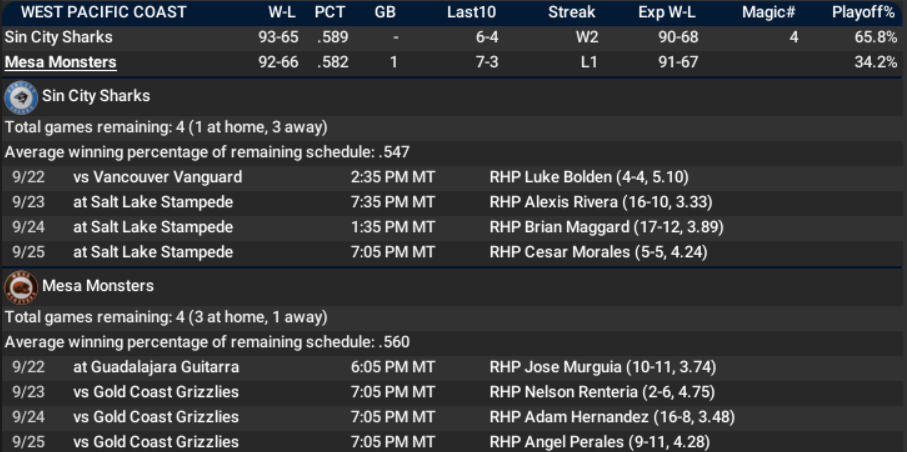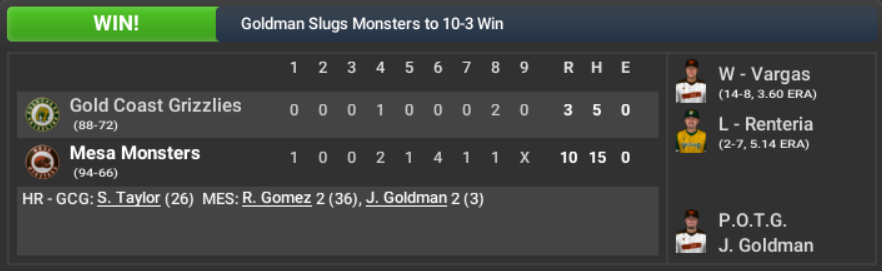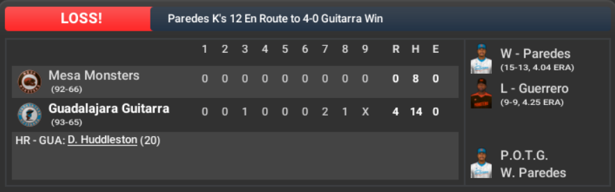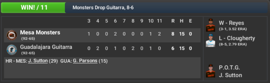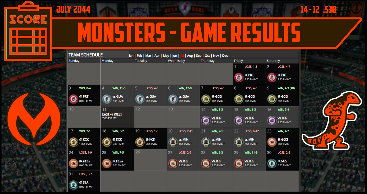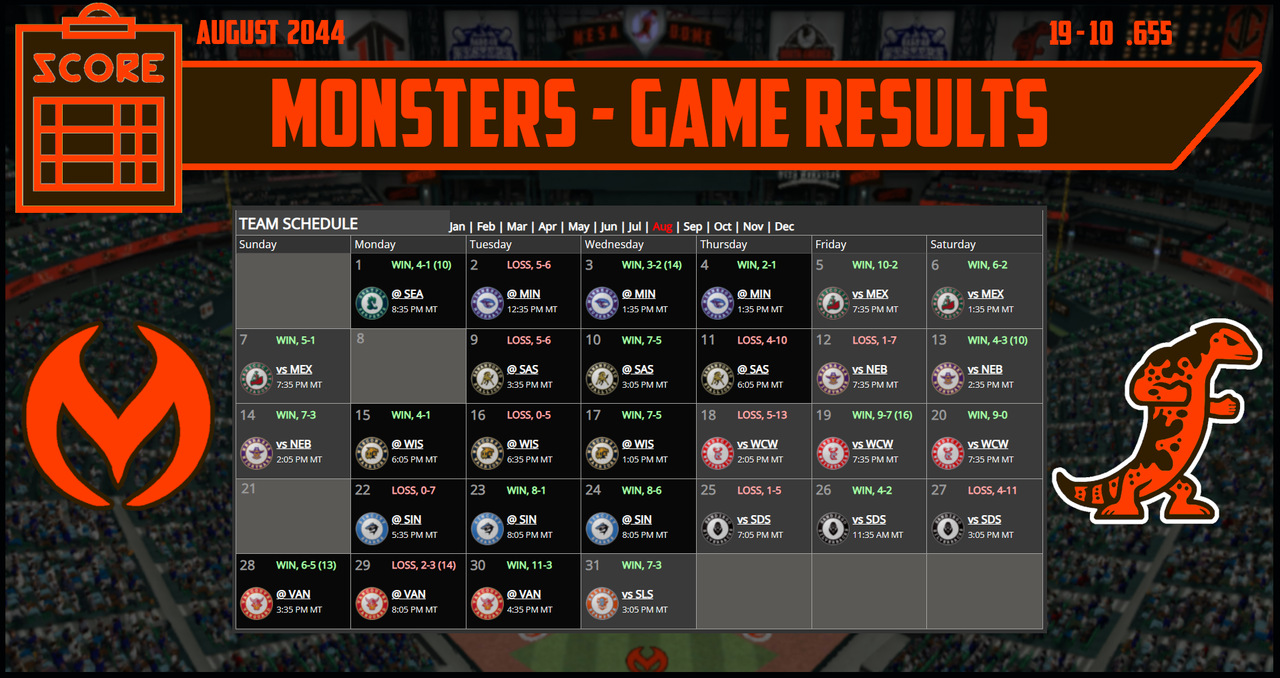 Following the 0-5 start to September, the Monsters have gone 8-4 and bring a 4 game win streak into the epic series with 1st place Guadaljara (1 game up on Space City).
