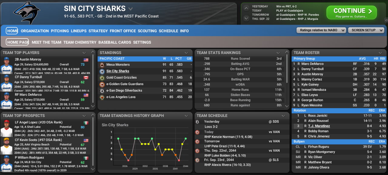 Buncha trades coming. Back story: I went through the mesa minor league system, really looking at assets. I sorted out all the players by age/potential and assigned them to AAA, AA, and A essentially based on "how far from the major leagues are they" (duh), instead of having the AI do it (to save time).