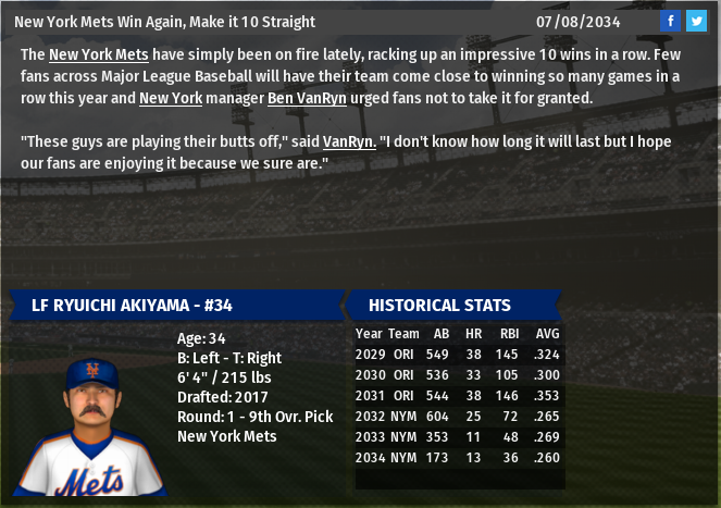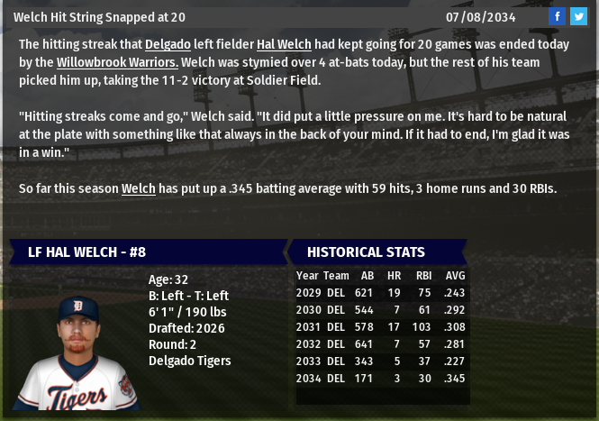 Gotham City 3b Lando Sackett has a 25 game hitting streak.