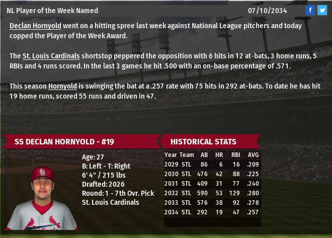 St. Louis SS Declan Hornyold is named MLB NL POTW.
