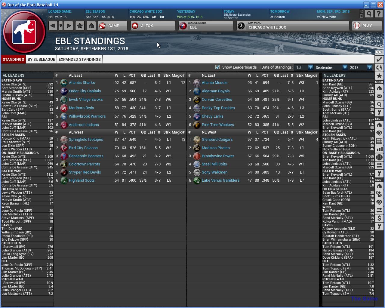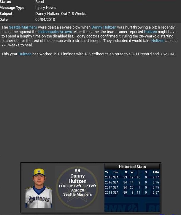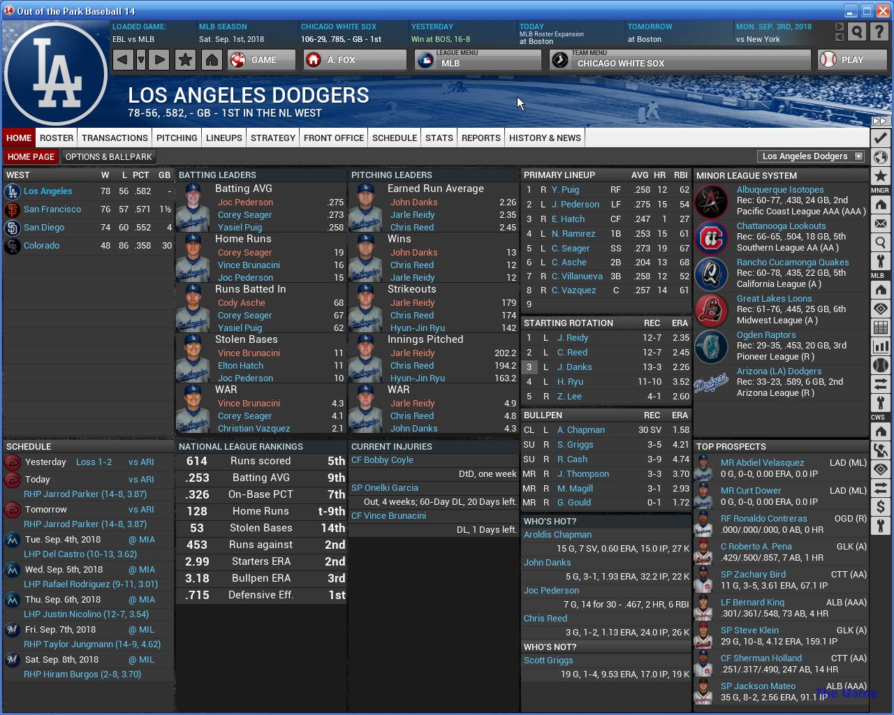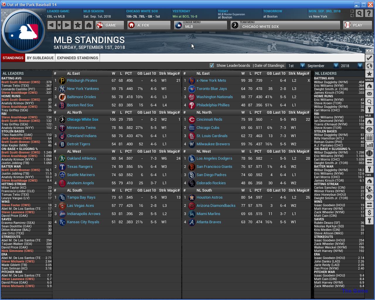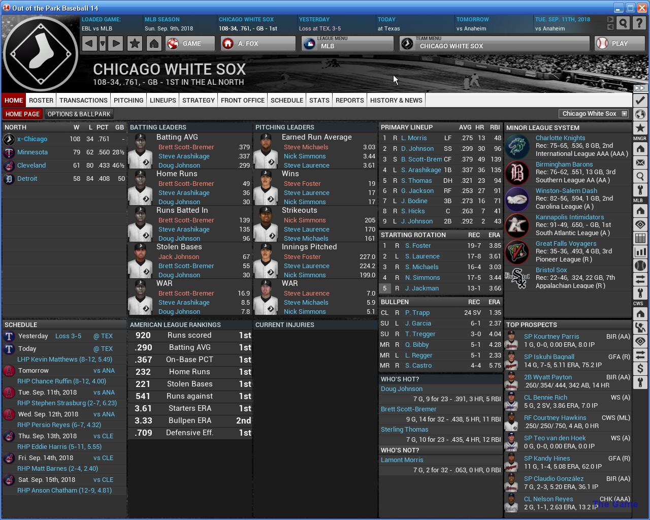 4-1 to end the month. We are a little banged up right now. Steve Michaels is DtD for 4 more days with a Finger Blister. No word yet on whether or not he will miss his next start. He probably will. Steve Arashikage should be back in a week. Nick Simmons should be back in 2 days and migth start in place of Michaels for a game, then bump Castro back to the pen. September will be a fairly easy month with plenty of bad teams like NYY, BOS, CLE, ANA & DET. September Call Ups: C L/R Jose Barrera .290 11 HR 36 RBI AAA. Played in MLB in 2017. great arm. IF L/R Wilbert Lewis .247 12 Hr 49 RBI AAA. Played 3 games for Baltimore in 2017. CF S/R Keenyn Walker .257 13 HR 38 RBI 35 SB AAA. 4 games with CWS this season. RF R/R Courtney Hawkins .270 23 HR 59 RBI 23 SB AAA. #99 Prospect MLB. RHP Zach Isler 12-8 2.98 172.1 IP 134 K 45 BB .279 BABIP AAA. 4 games in 2017 with CWS. RHP Chris Beck 10-6 3.52 156 IP 144 K 51 BB .260 BABIP AAA.