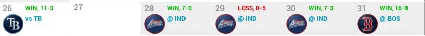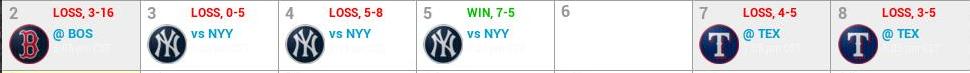 Jackman looked bad in this game vs Boston. Our offense did great though. Rookie RF Courtney Hawkins had a 3 run pinch hit Triple in his 1st ML AB.