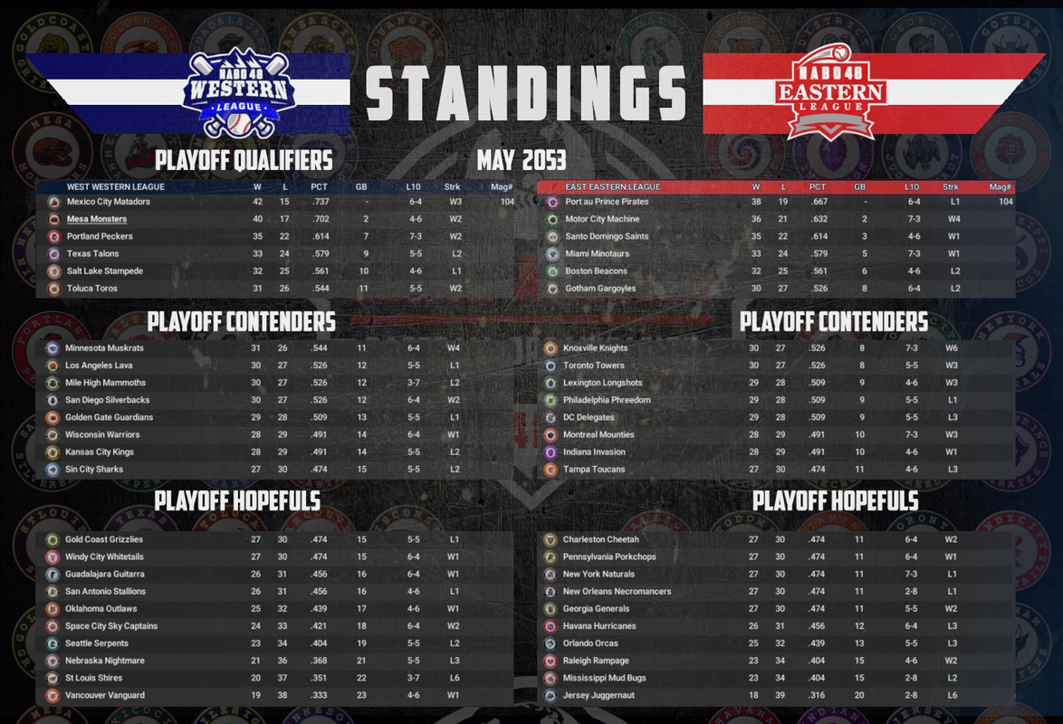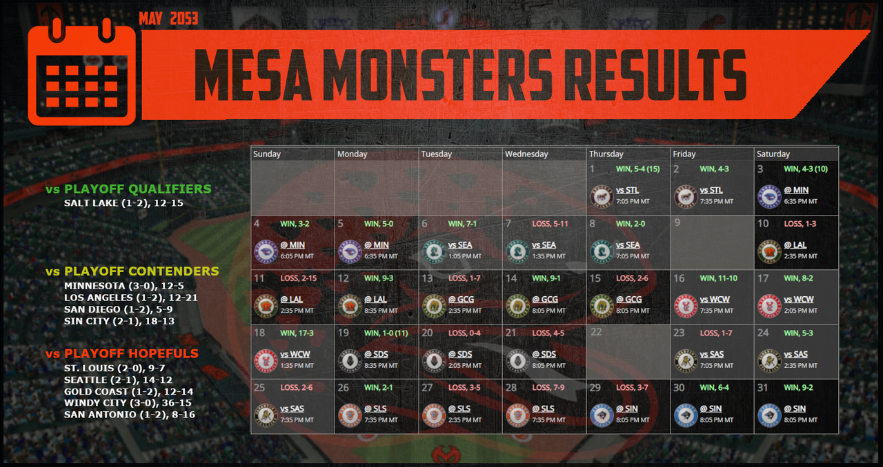 ![]() Here we go, battle of the top 2 teams to start the month of June. Mesa begins June with 9 consecutive games against the top 4 teams (mesa is 2nd), Mexico City, Portland, and Texas.