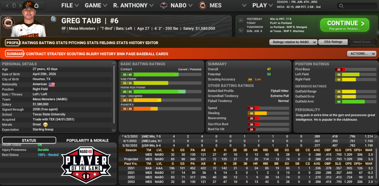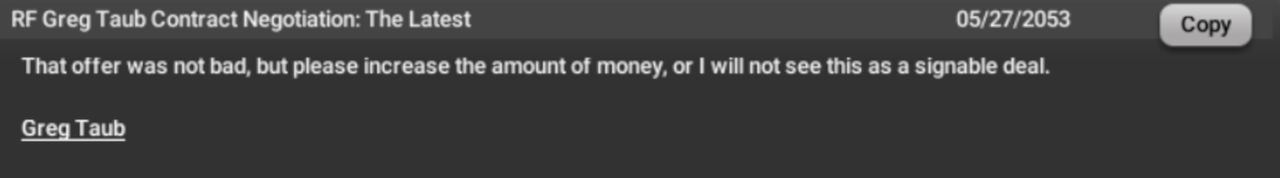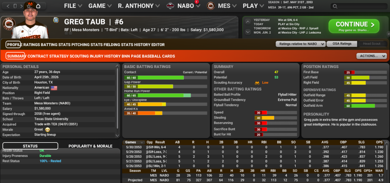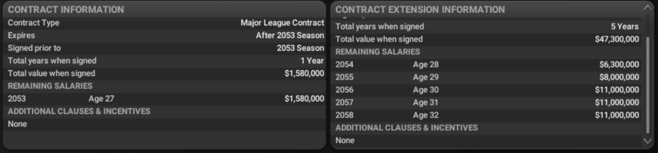 ![]() ![]() ![]() I thought we had an agreement with 9M/y for his peak seasons, but Taub went back to his agent and came back with higher demands. ![]() ![]() ![]() Even if Taub doesn't develop any further and just puts up his career stats as a regular starter (replacing Sarver in LF next year), he will have produced enough to earn the contract.