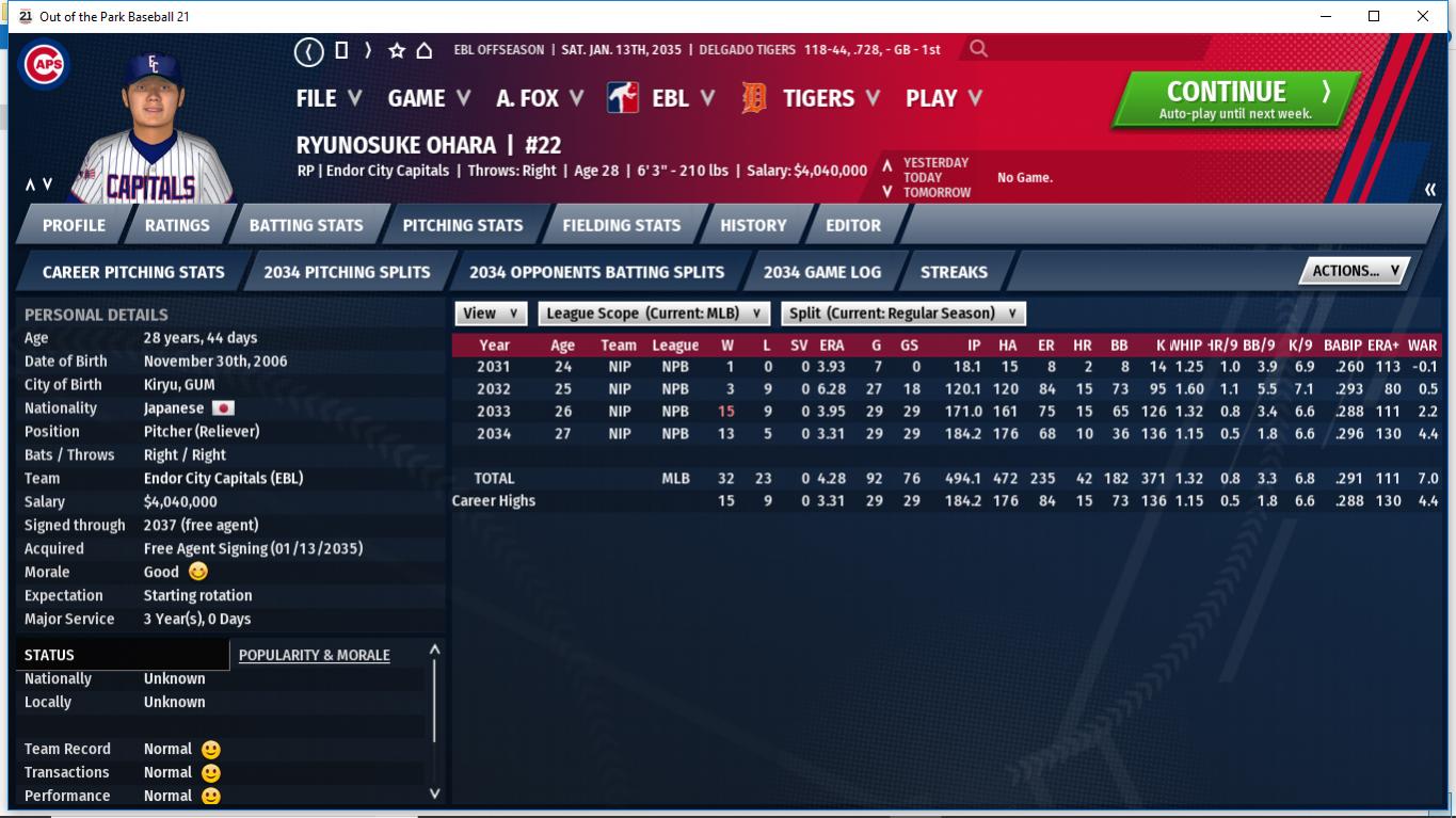 Marlboro Razorbacks claim minor league P Luis Serrano off of Waivers from Delgado Tigers. Endor City Capitals sign RP Ryunosuke Ohara to a 3 yr deal.