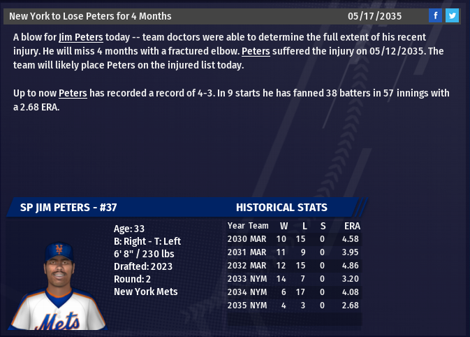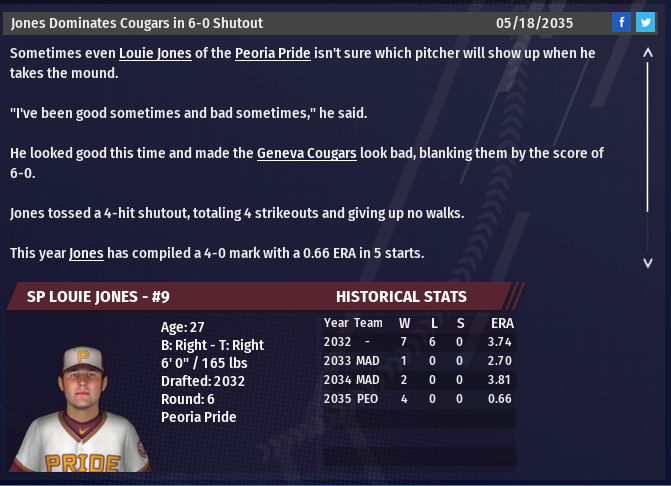 Seraphs SP Addie Joss pitched the 1st No Hitter in UBL history with 14 K. Madison loses RP Keko Sako for the season. Colorado Rockies fire GM Kenny Dixon.