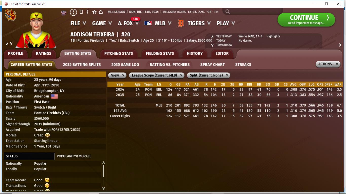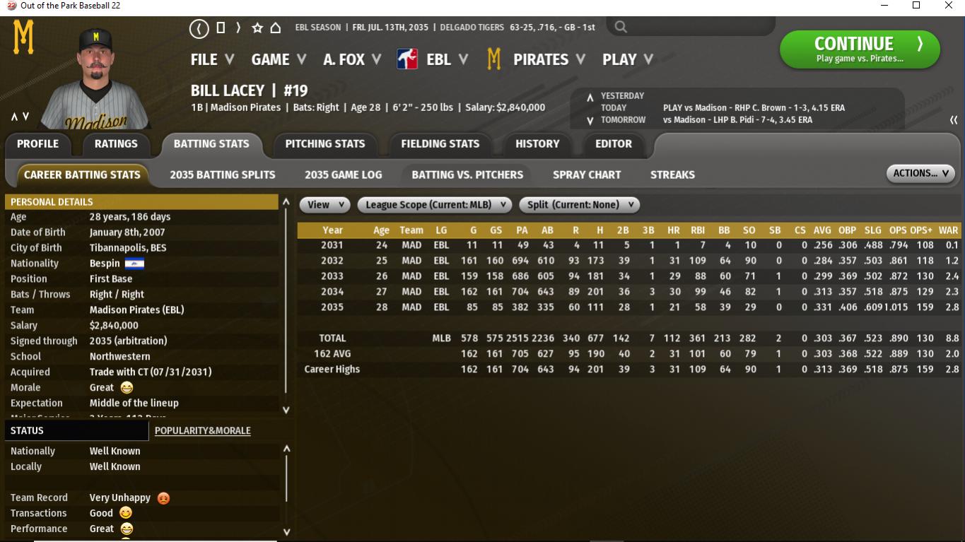 Yokohama 1b Warren Lttlefield has a 3 HR game. Mos Eisley Pod Racers traded 1b Miguel Angel Ramos to the Endor City Capitals for a minor league 3b.