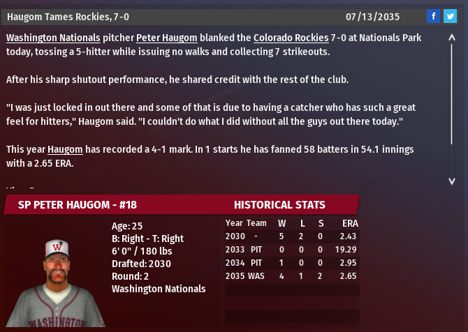 Solo SP Hal Carlson pitched a 5 H 15 K CG SH. Washington SP Peter Haugom pitched a 5 H 7 K CG SH. Montreal SP Rudjer Kandic pitched a 2 H CG SH. Peoria loses SP Javier Garcia for the season.