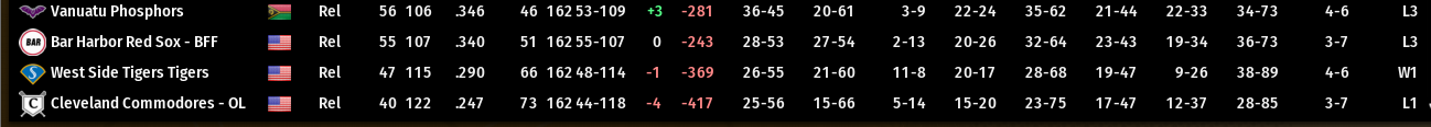 In PT, Cary and Cedar Rapids will face off in the NC divisional round, while Waffletown battles from the AC, so an OL World Series is possible. In terms of promotion and relegation, the three playoff teams will be going to silver, hopefully together, while Cleveland will be headed to iron, running into OL friends, we also hope. I have reached out to Jobu with entreaties to intervene so that OOTP does not forget to fix the red-headed stepchild that is the friends list. If you have been seeking pack help, he might be less attentive, as he tries to ensure the fix doesn't get skipped. Good luck and congratulations to all. |