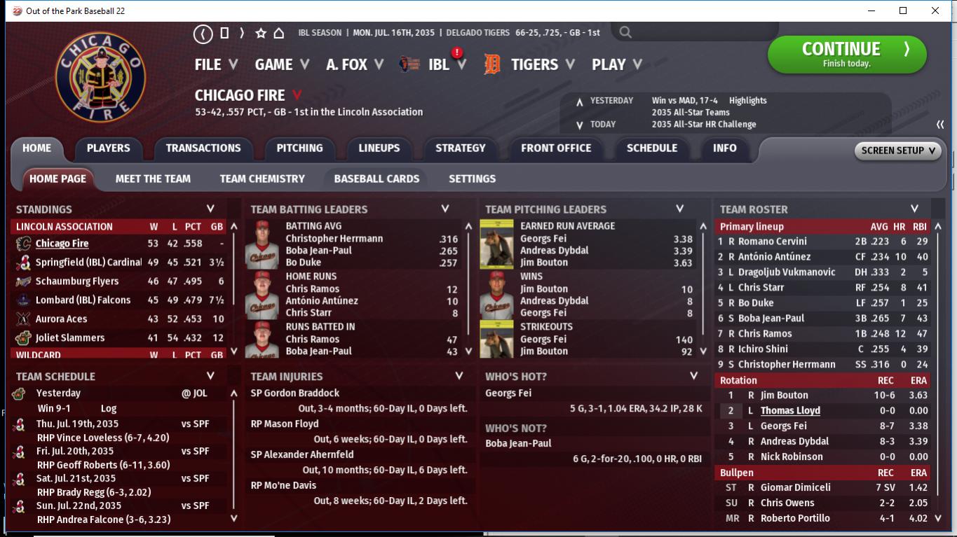 Mighty Joe Young defeated teammate Majnun Humbert in the HR derby. Young his 64 HR total. Portland loses RP Felix Lopez for the season. Kashyyyk Bowcasters claim RP Will Madderman off of Waivers from Ford Thunderbirds.