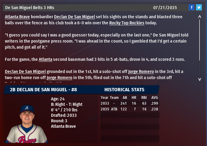 Brave 2b DeClan de San Miguel has a 3 HR game.