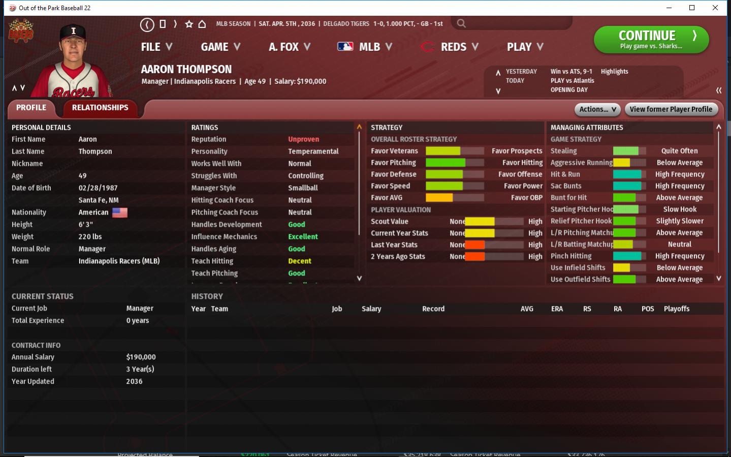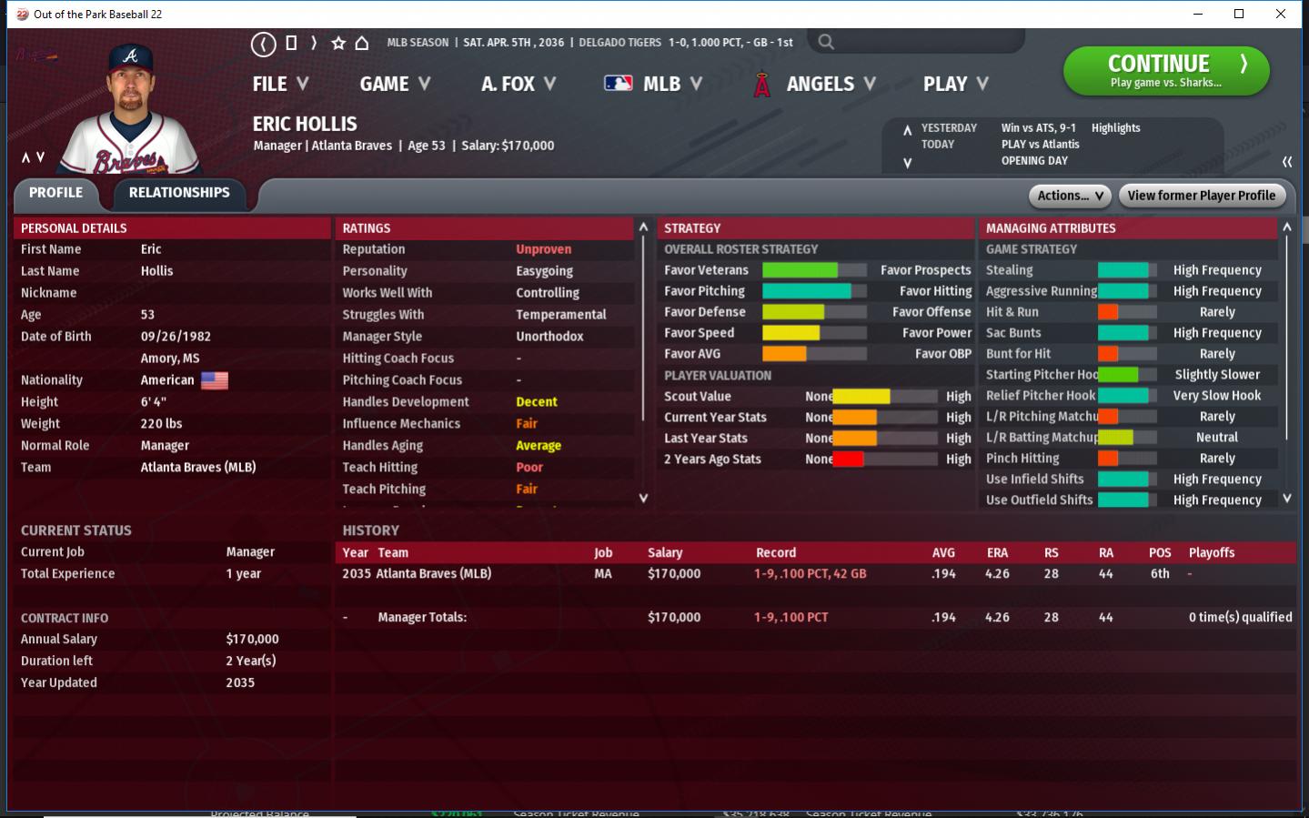 The baby Sharks are growing up a bit. they are not a great team yet but they are better then last season. 1b Dan Lincoln has established himself as a solid 1b and SP Julia Roberts is a legit ace this year. Cf Reggie Simmons goes into his 1st full season as the Sharks Cf and should eventually be a #3 hitter. They still have the veteran Thorley brothers C Jamie & Sp Damon. 2036 Additions 3b Craig Trudel - a weak hitting good glove 3b. SS Jose Montanez - a rookie SS who can hot for AVG, play solid D Also a P. SP Urtilan Kunjufu - a journeyman P, who has never started a game in the majors.