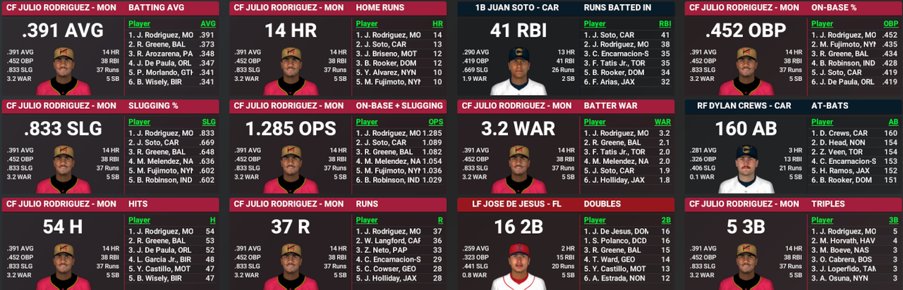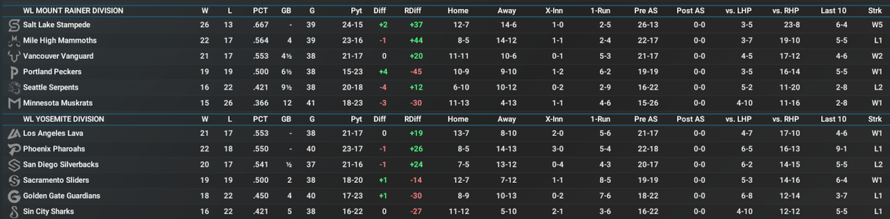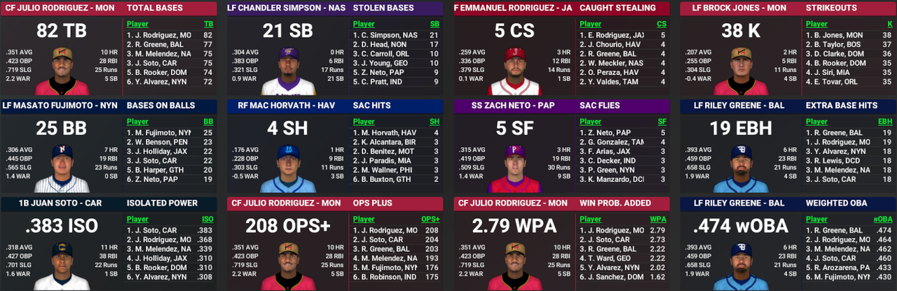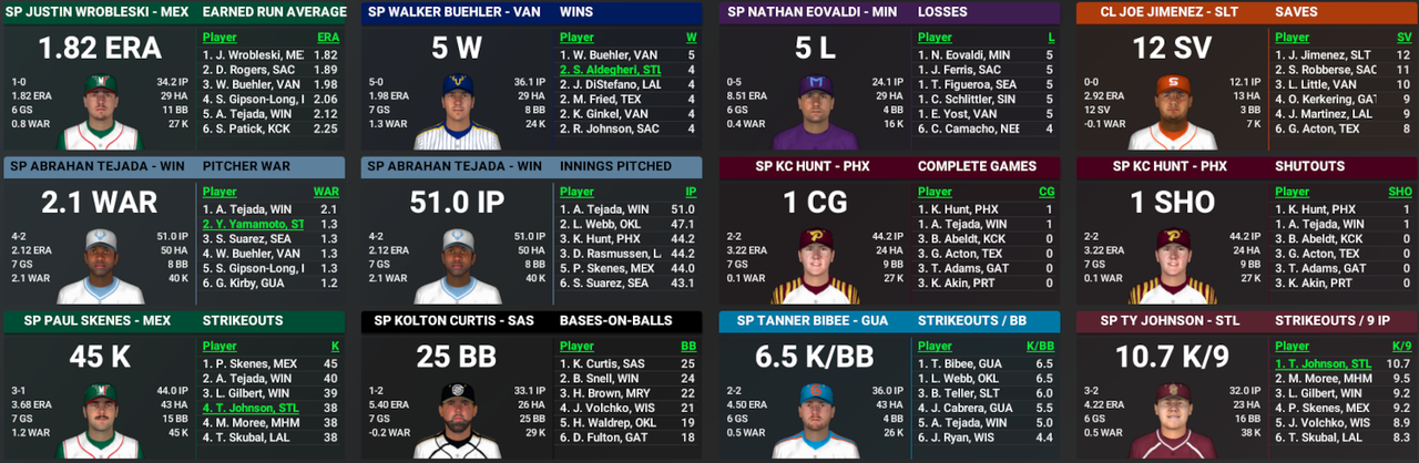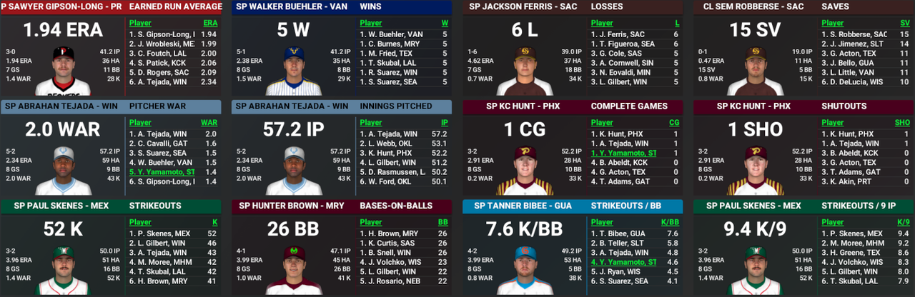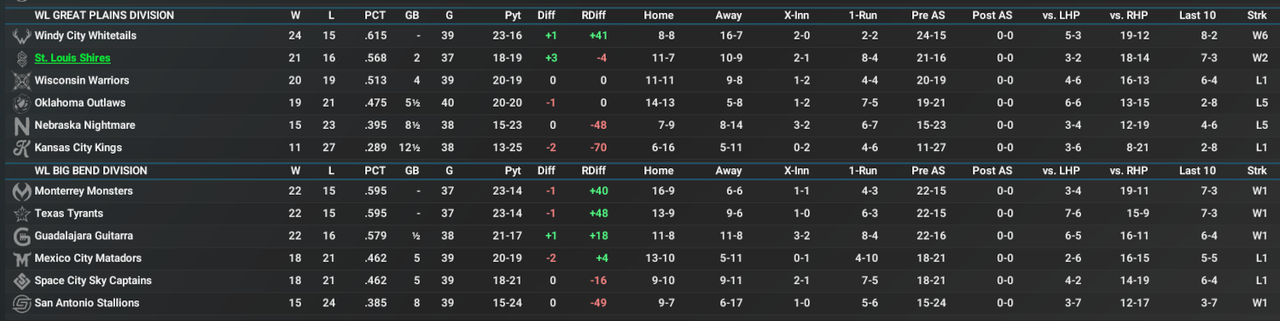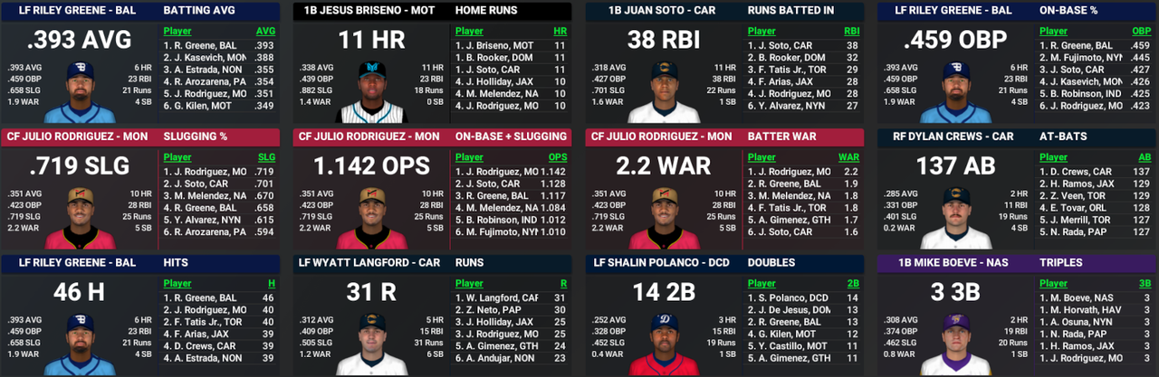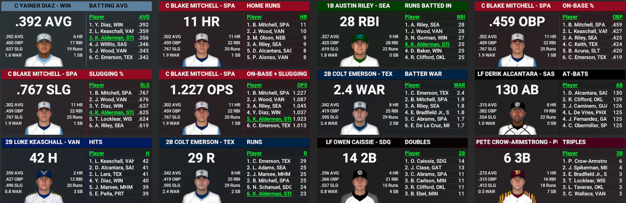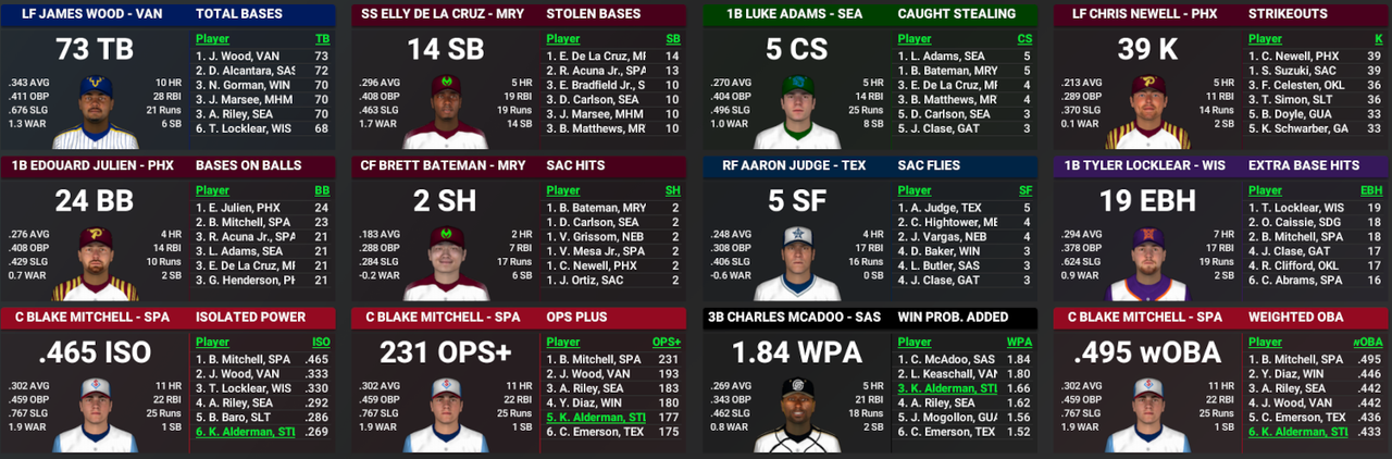 ![]() ![]() ![]() I did not screenshot the Western League's batting leaders for week 6. Oops. |