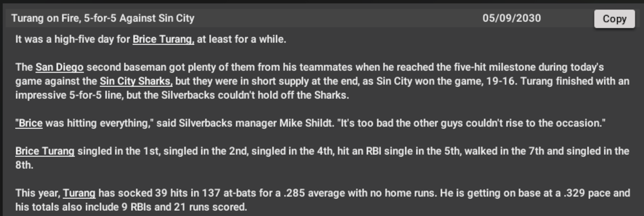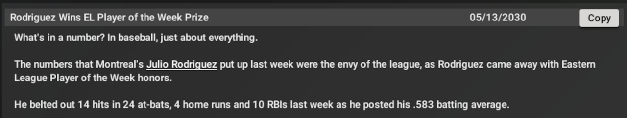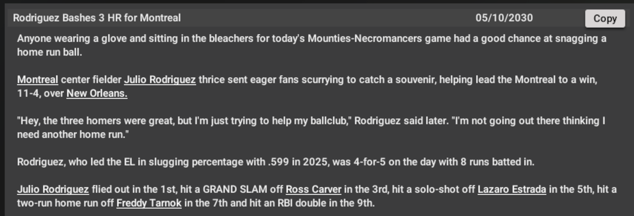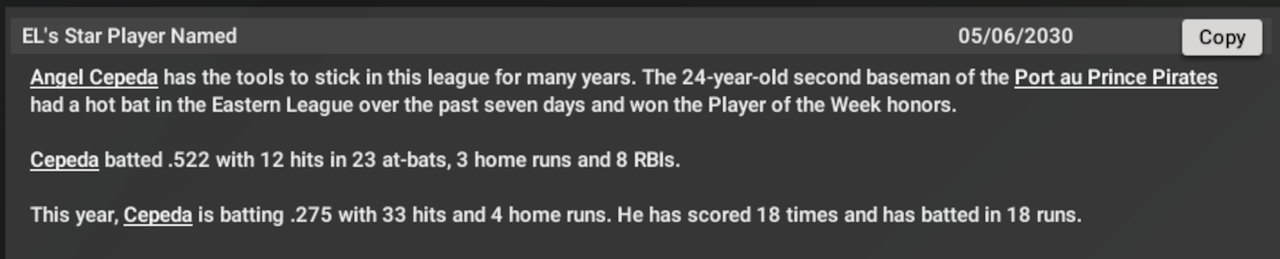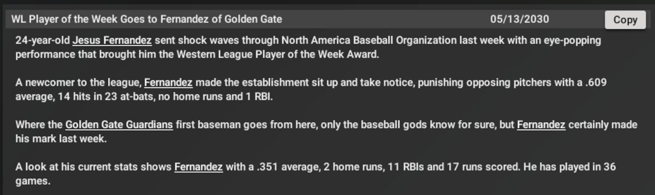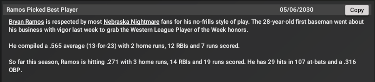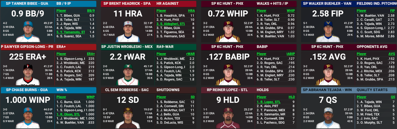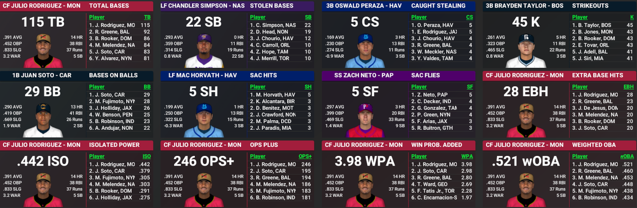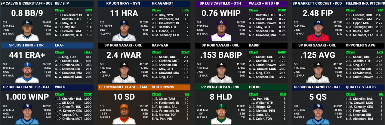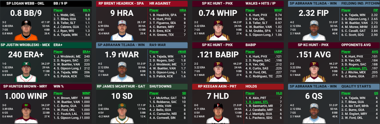 ![]() ![]() ![]() I did not screenshot the Western League's batting leaders for week 6. Oops. |