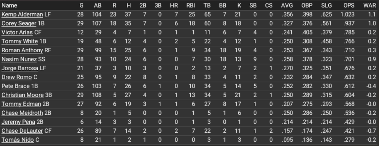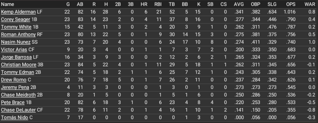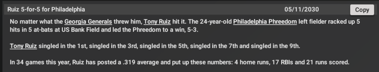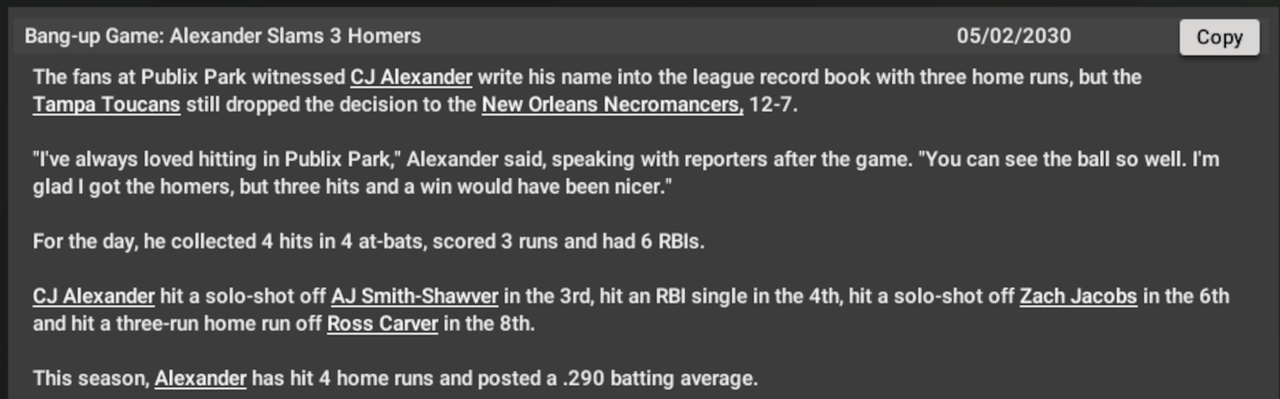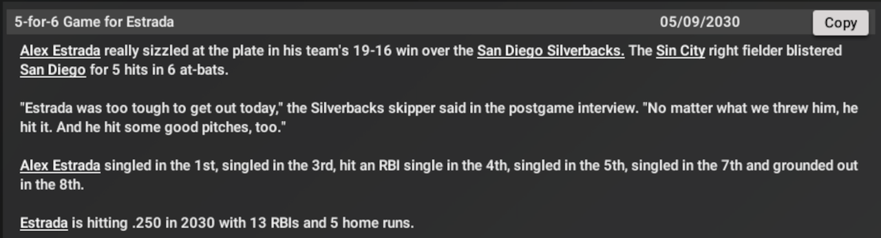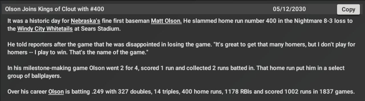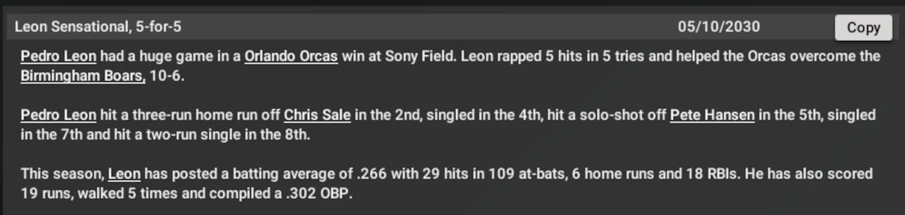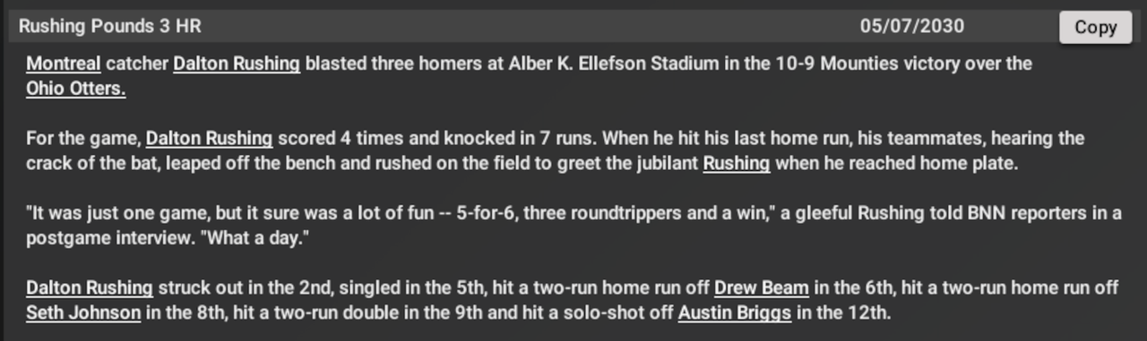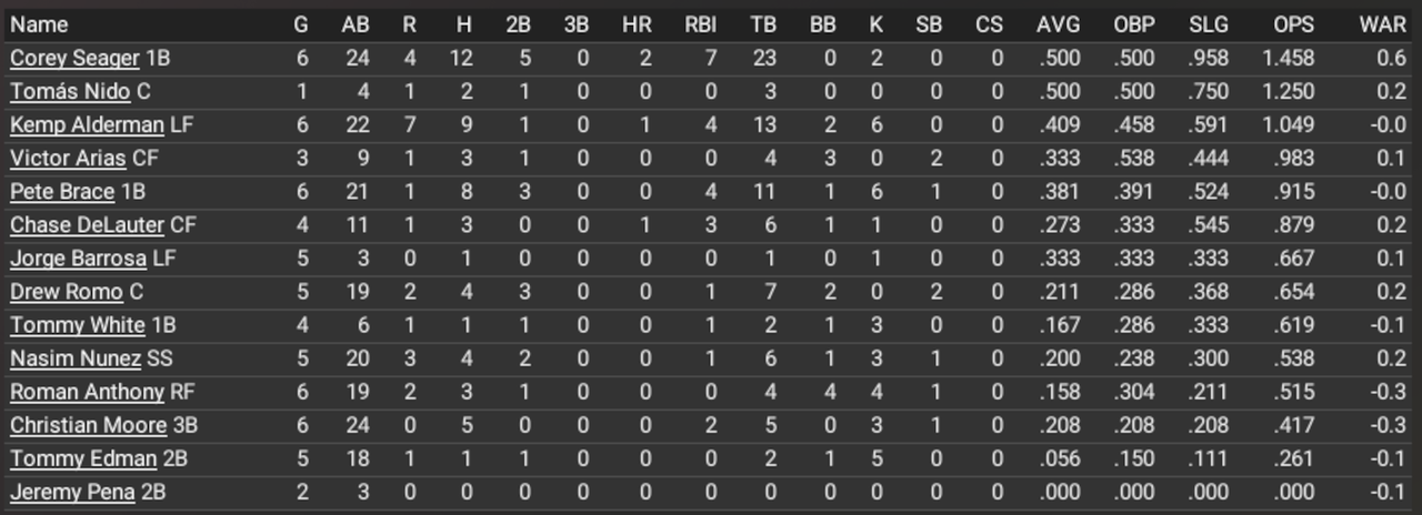 ![]() ![]() ![]() I did not screenshot the Western League's batting leaders for week 6. Oops. |