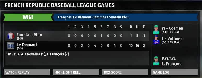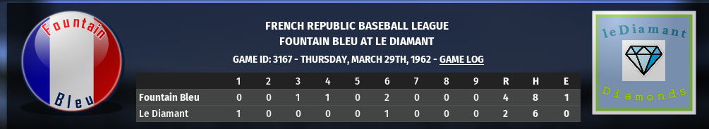 Sebastian brought his good stuff to Marseilles and his home country of France. Born in Cleguer in 1938, Vautier cruised for 7.1 innings and the Diamond batters took care of the rest.