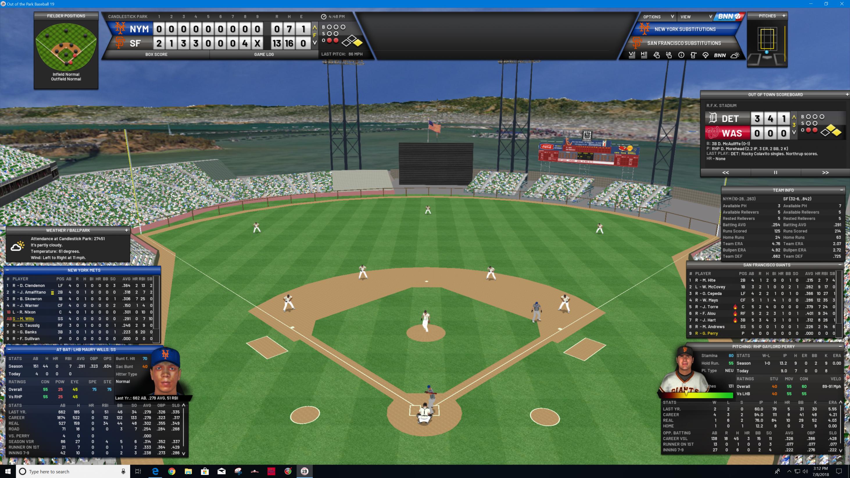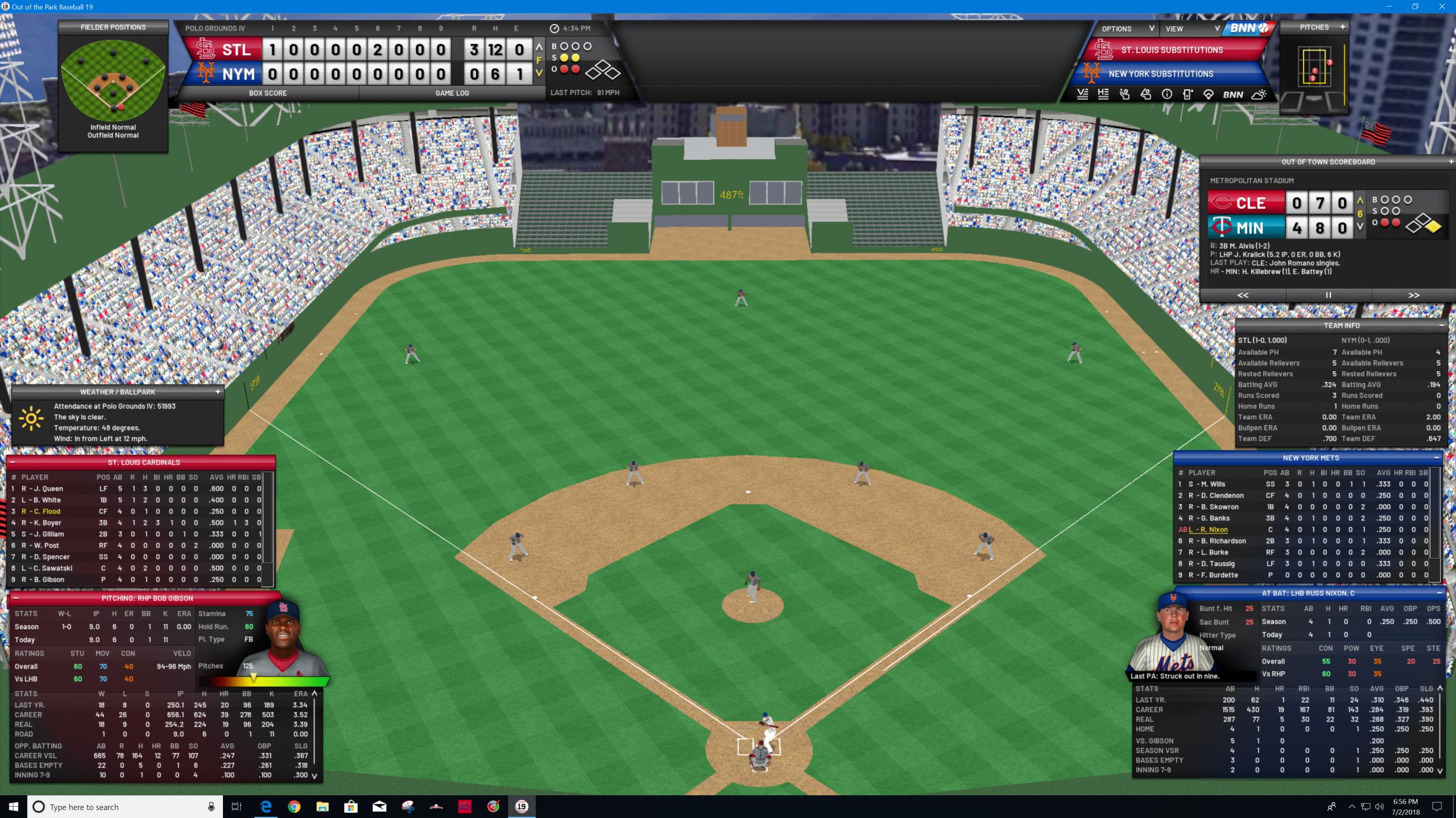 Robert Bishop pitches a very good game and George Banks' Grand Slam helped a lot as we take out the PHI Phillies @ Connie Mack Stadium. One of my relievers, Peter Olsen was suspended for 3 games for starting a fight. REC: 1-4