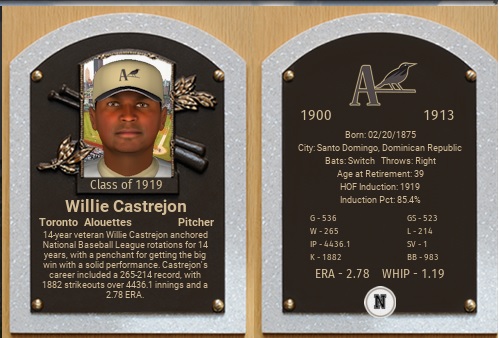 Entered the league by the 1st round of the inaugural draft (8th overall), he became a free agent signing for the San Fran Gold (Sox) and was a key part of their run in the 1900s. He entered the hall on his 5th ballot.
