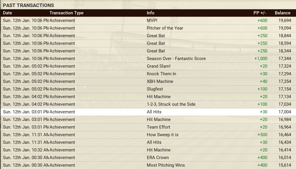 Then, I approached G7 completely conventionally (betting that Scottsdale would think that's the last thing I would do). Red Ruffing went in and dominated for 7 IP. That was his first start all season, but he was my only starting-type pitcher that was at full stamina. A 2-RBI triple by Norm Cash and a sac fly by Barry Bonds, all in the 1st inning, was the only scoring in the finale. Scottsdale's 100 Walter Johnson and TOTD Clayton Kershaw matched my 100 Red Ruffing and 100 John Smoltz pitch for pitch after the 1st inning. Here is the lineup that my pitchers held scoreless in G7: 1 - 99 Roger Connor 2 - 100 Josh Gibson 3 - 100 SE Zack Wheat 4 - TOTD Miguel Cabrera 5 - 100 Ty Cobb 6 - 100 SE Ken Griffey Jr. 7 - 100 TOTY Alex Bregman 8 - 100 Wade Boggs 9 - 100 Ozzie Smith As for end-of-season loot: Pitcher of the Year: 99 Hal Newhouser (welcome to the squad, bub) Great Bats: Bonds, Appling, Ozzie, Cash (welcome to you as well) Reliever of the Year: 100 SE Clayton Kershaw (and to you, good sir) ____ So, folks, are we throwing in the same lot for next week? Any interest in getting some/all of the Old Timer 5 back together?