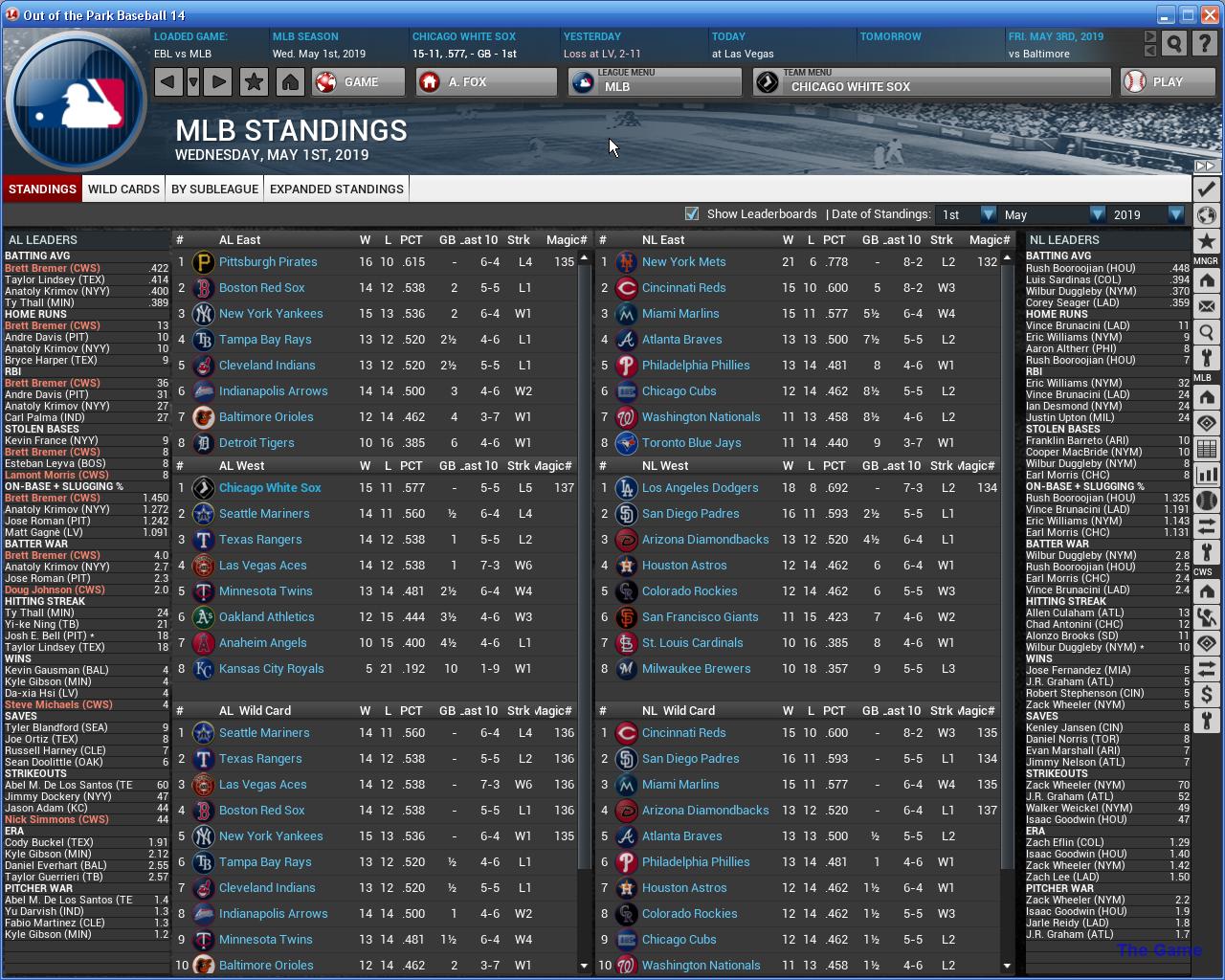 Pirates, White Sox, Mets & Dodgers lead their respective divisions. Royals are really bad. Wildcard race is wide open.