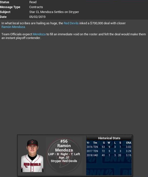 Red Devils signed a LHP MR. Chimera signed a LHP. Marlboro Reds SP Sam DuPont is done for the season with Tommy John surgery. Power LHP MR Danby is done for the season.