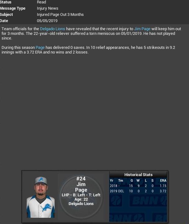 Alderaan signs veteran RF Chong. Delgado Lions will be without LHP Jim Page for 3 months.
