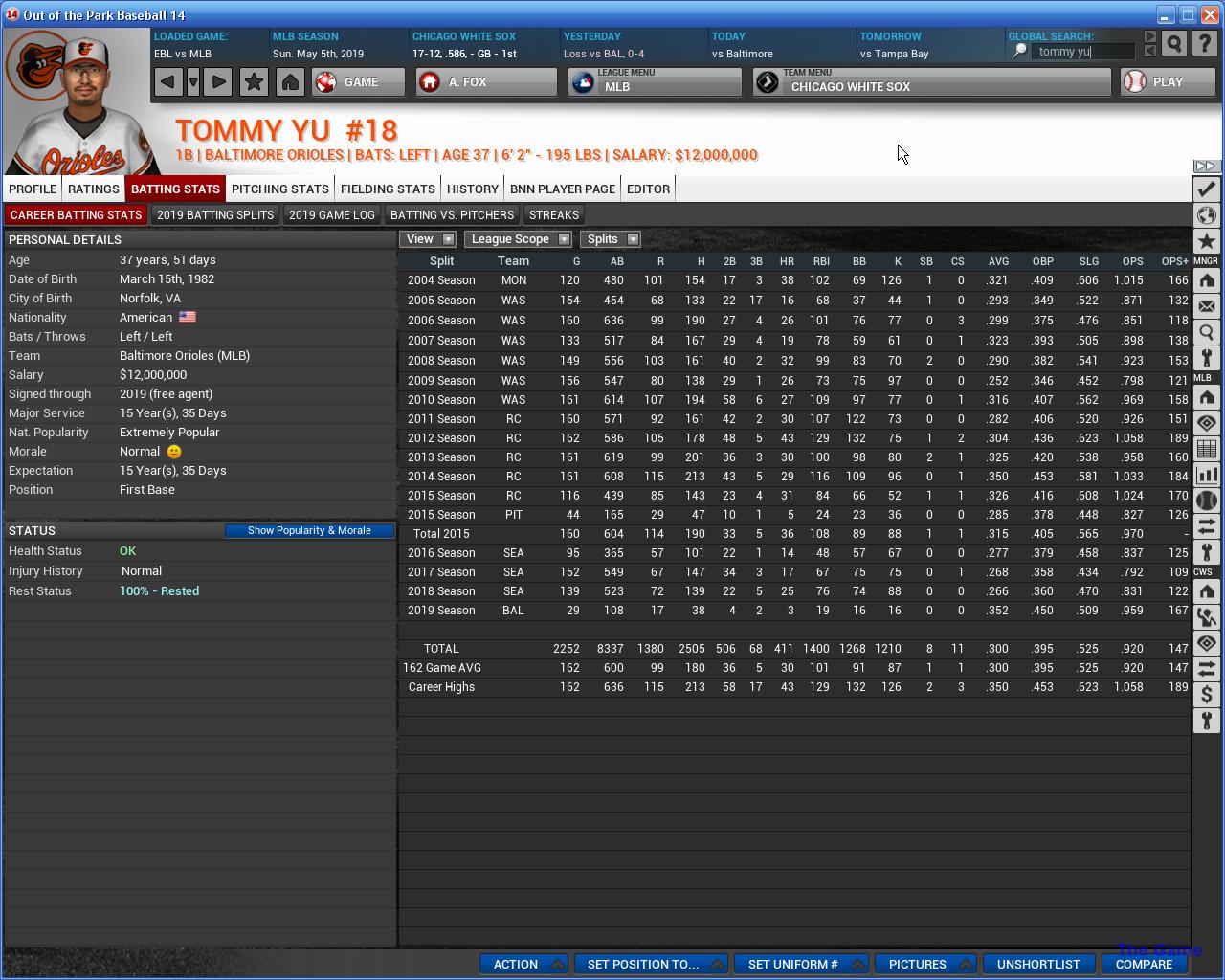 How Acq: Signed as a FA 12/01/18 Tommy is a 3rd generation Japanese American. His father is a retired Senior Chief in the US Navy. Tommy was born in Norfolk, VA but has lived in Pearl Harbor, Guantanamo Bay, Cubs, San Diego & Memphis, TN. Baseball was the way he connected with new friends. Tommy graduated from Dartmouth. Tommy was drafted by the Montreal Expos and is the last active member of the Expos. He won the 2012 LS MVP while playing with Republic City of the CBF. He is the 2004 NL Rookie of the Year, a 4 time Gold Glove 1B and a 7 time All Star.