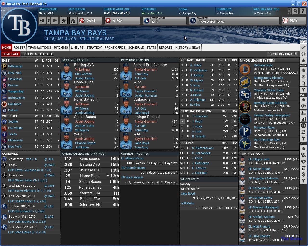 4 games vs Tampa Bay. Decent team that seems to lack offense right now. Led by Jobling, Myers & Guerrieri. If their CL comes in they will probably win.
