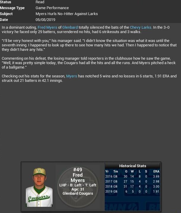 Glenbard Cougars LHP Fred Meyers throws his 1st No Hitter. It is the 1st No Hitter in the EBL since 2017, the 21st overall and the 3rd for Glenbard. (Kanter & Pipgras)