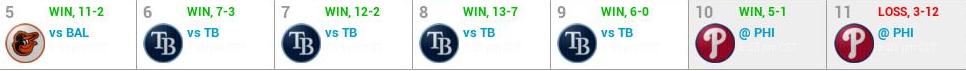 Ended the month with a 5 game losing streak. Laurence lasted .1 IP 7 ER yesterday. With the exception of Doug Johnson, Brett & Mack no one else has hot much the last 5 games. Arashikage will be back for the Baltimore series.