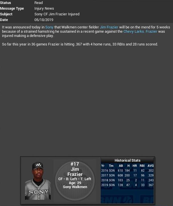 Lamont Morris has a nice 5 for 5 game. Twinkle Toes Flintstone wins the EBL AL POTW. Alderaan RHP Ken Sieb will be out til next season. Joe Howley is done for the season.