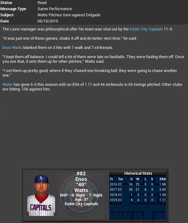 Endor City Capitals John Williams wins his 350th game. He is the all time winningest RHP and #2 behind Jim Kanter. Congrats to my friend and former teammate.