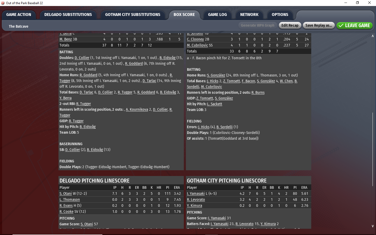 8 game winning streak. Tarlac, Tugger, Goddard & Eidsvag all had a great game. Otani was effective. Thomason was terrible again. Cooke is 12 for 12 as a Tiger.