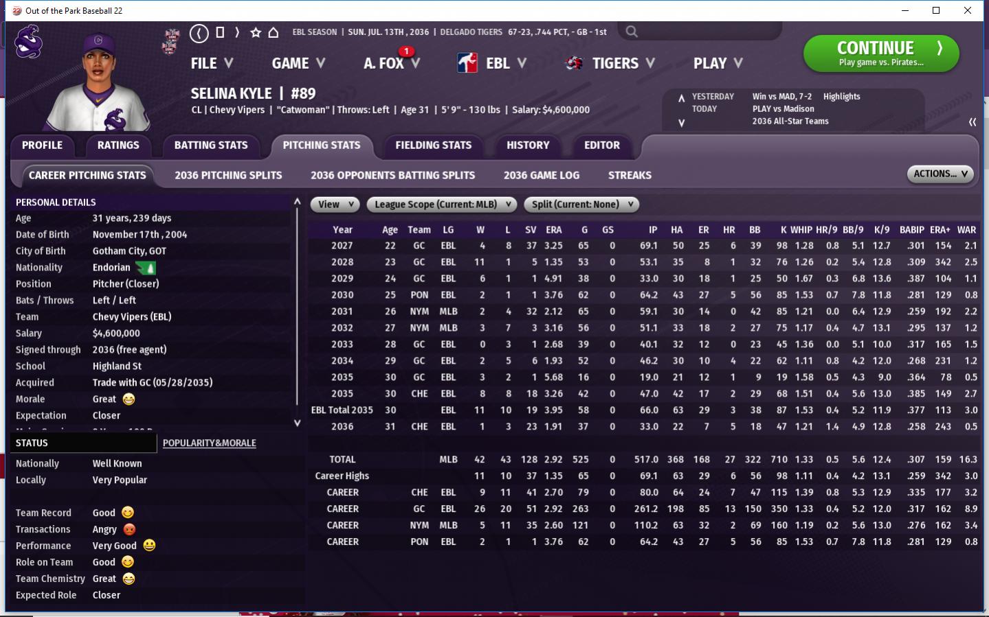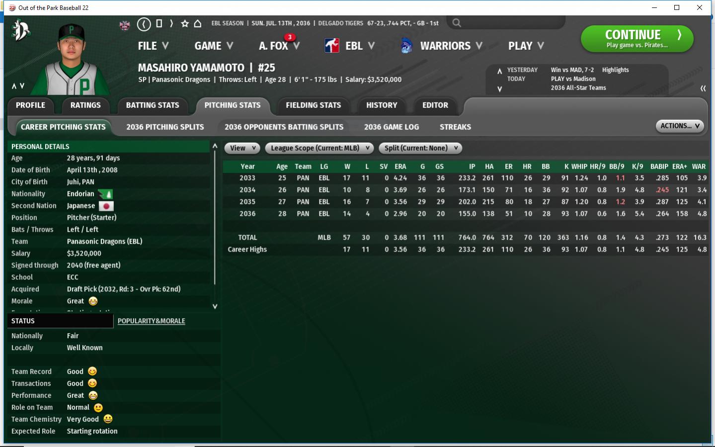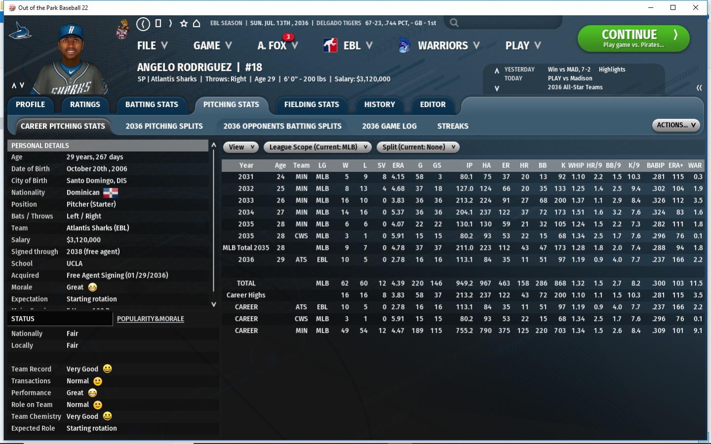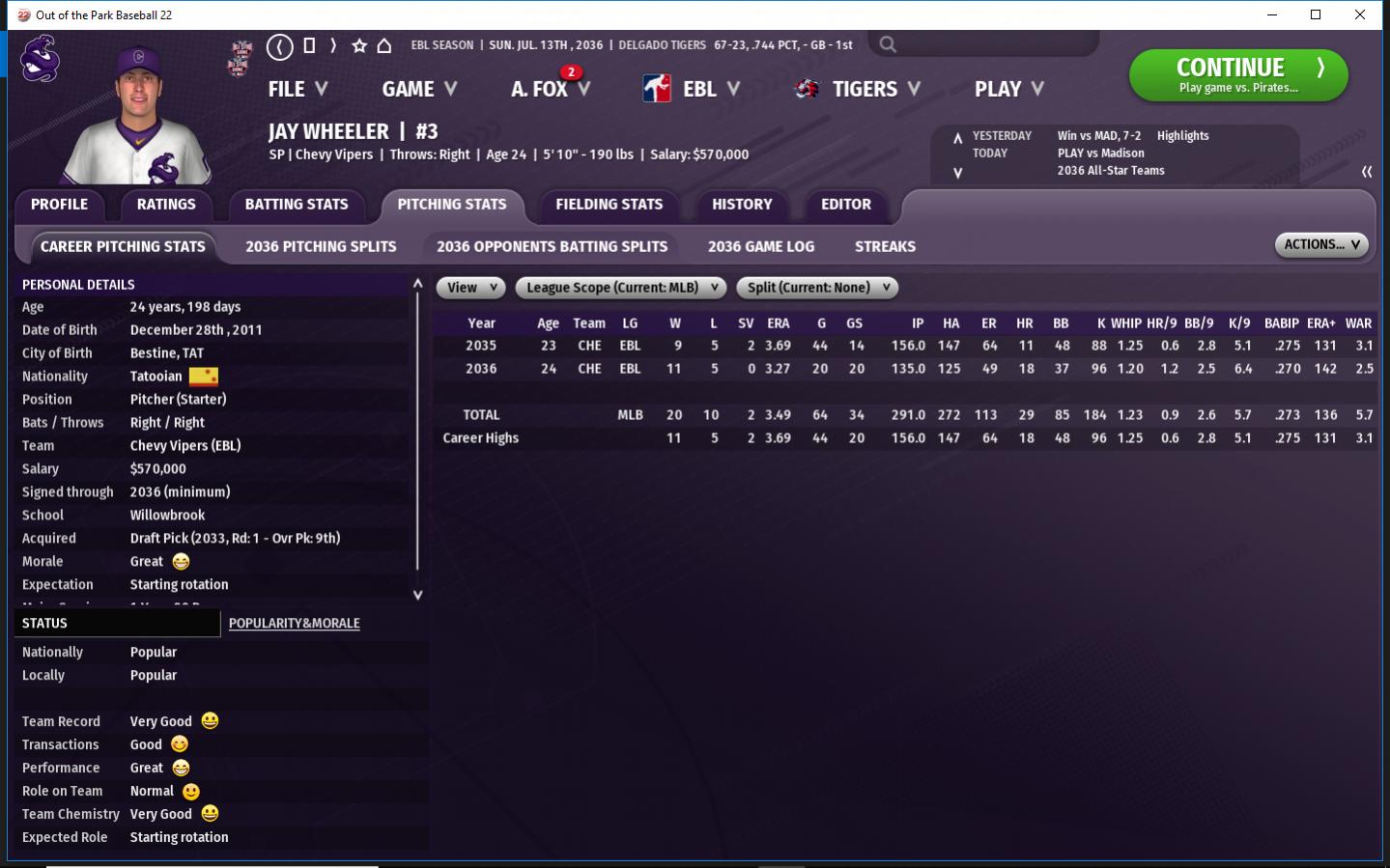 The starters will go 6 innings then the bench will come in. Christy will start the game then go 2 IP. I have to look to see who is rested for other pitching assignments. This is the 1st AL all star team i have managed since 2008 and my 1st overall since 2025.