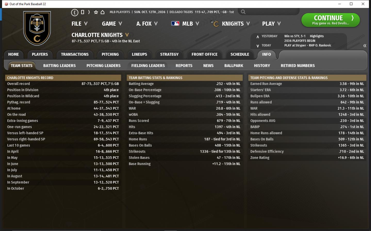 2036 IBL Final Standings