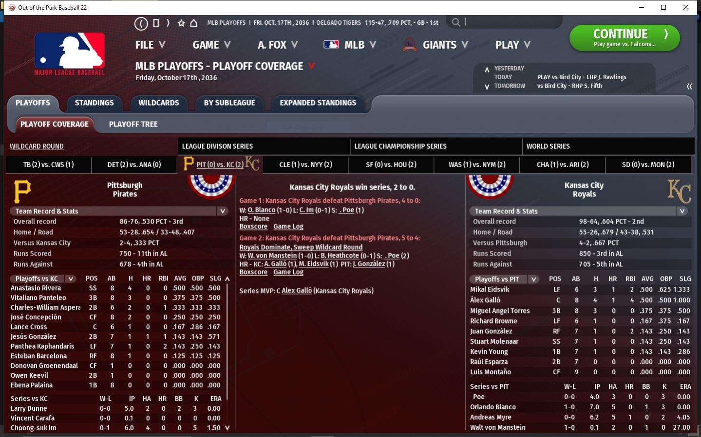 2036 MLB AL Wildcard Round #6 PIT vs #3 KC