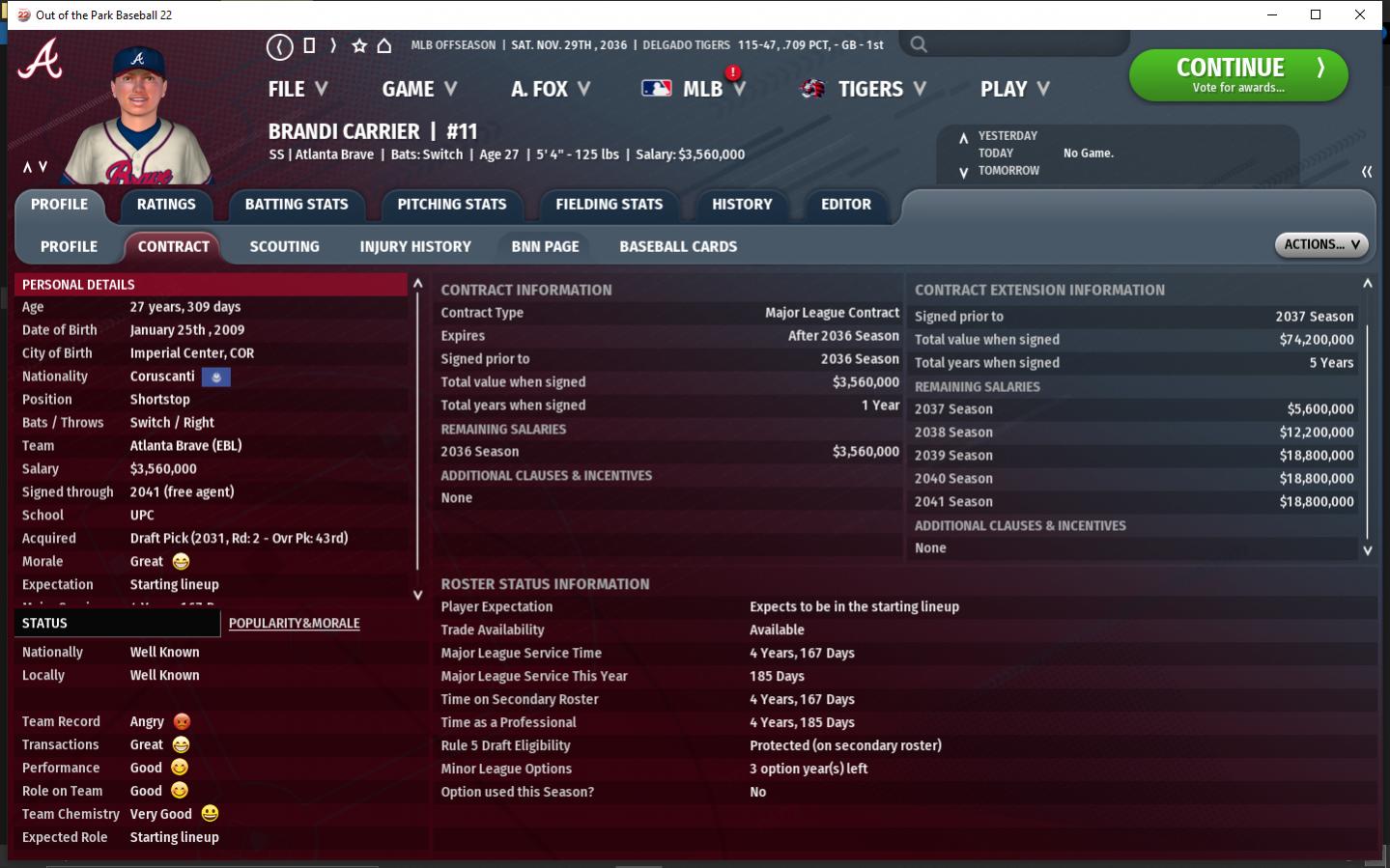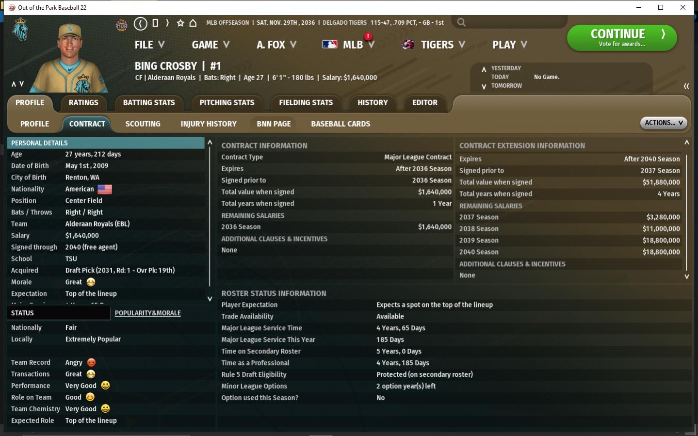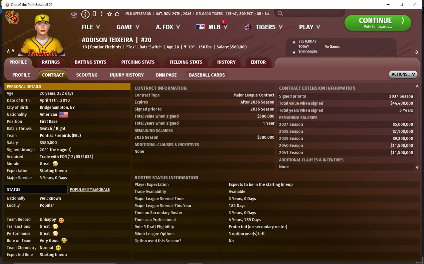 Pontiac Firebirds re-sign 1b Addison Teixeira to a 5 yr extension. Alderaan Royals re-sign 3b Robert Chivers to a 5 yr extension.