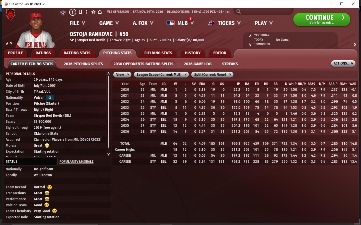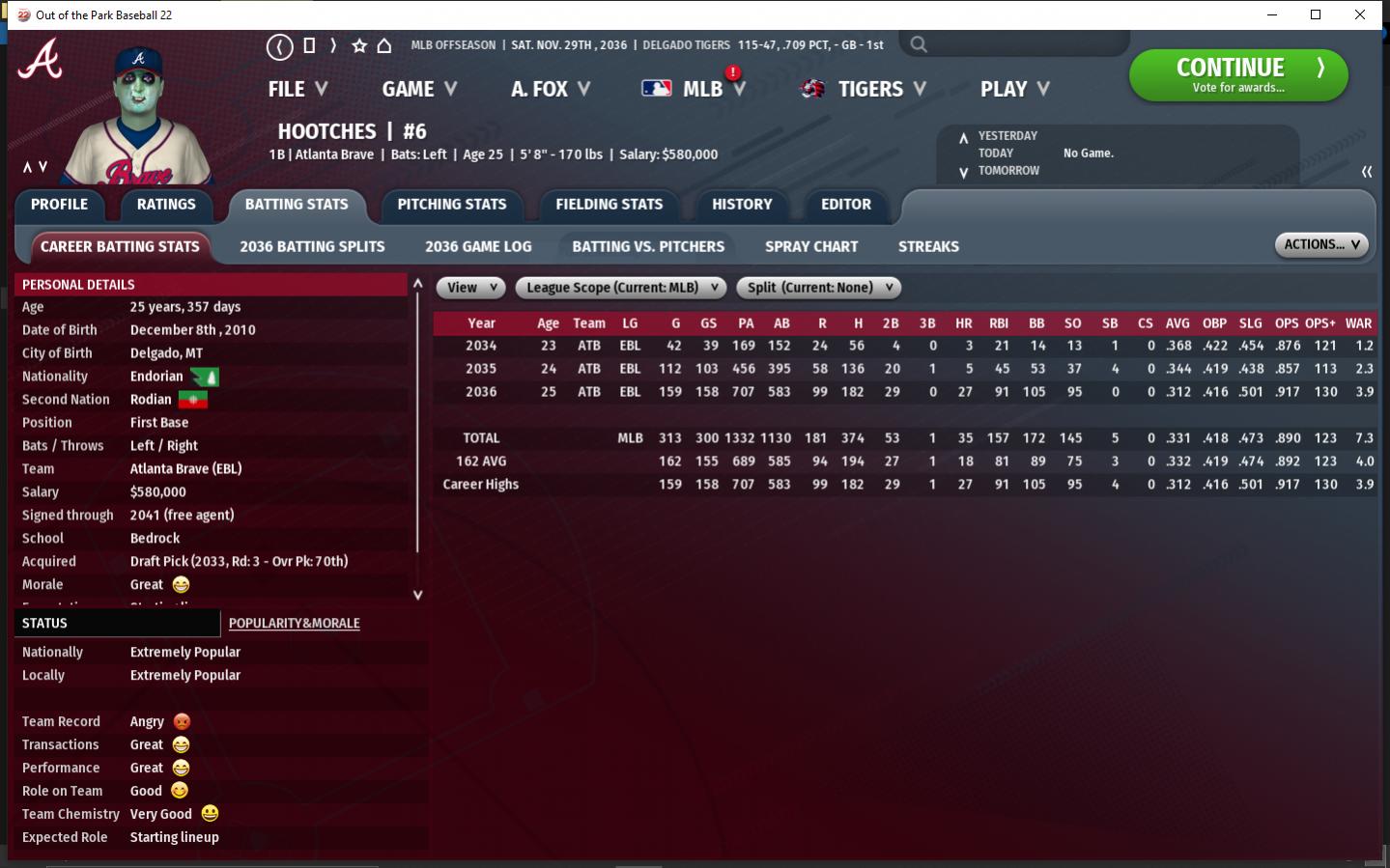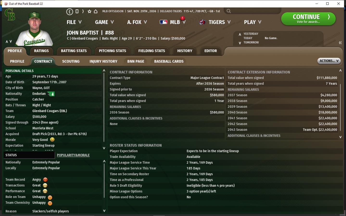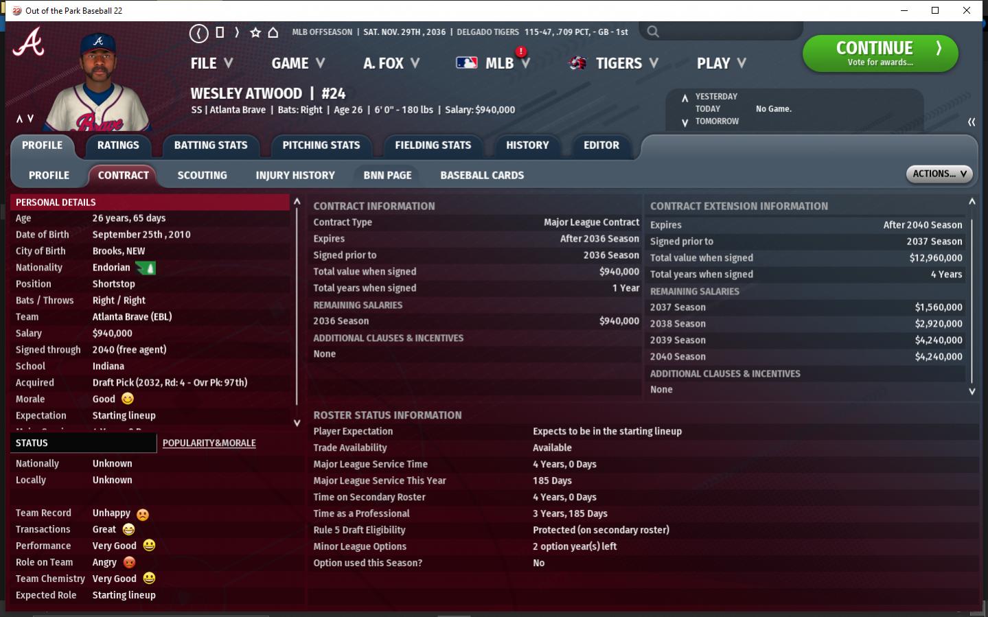 Pontiac Firebirds re-sign 1b Addison Teixeira to a 5 yr extension. Alderaan Royals re-sign 3b Robert Chivers to a 5 yr extension.