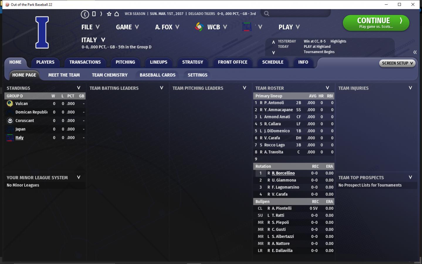 Group B will play at Dodger Stadium in LA Group C will play at King Cindaar Field in Lake Venus Group D will play at the Tokyo Dome in Tokyo. Championship will be at Tokyo Dome. Regular season is 8 games. Every other day for the next 2 weeks. Only Group winners advance. There will be tie breaker games.