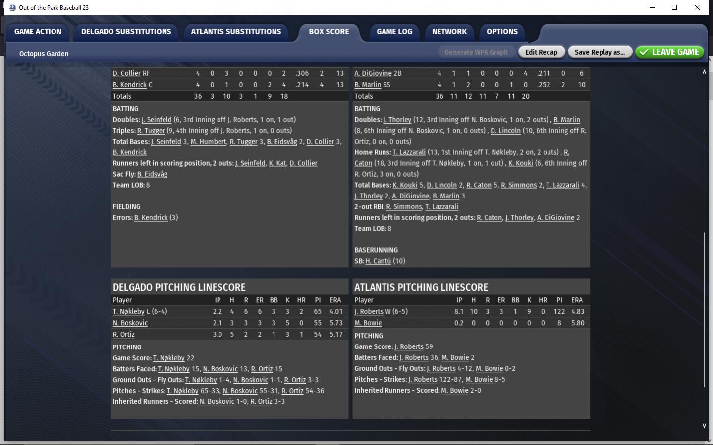 Nøkleby looked bad, as did Boskovic & Ortiz. I can't lie, them stinking up the place influenced who I drafted after this game. The offense tried to get us back into it but the pen decided to put it out of reach.
