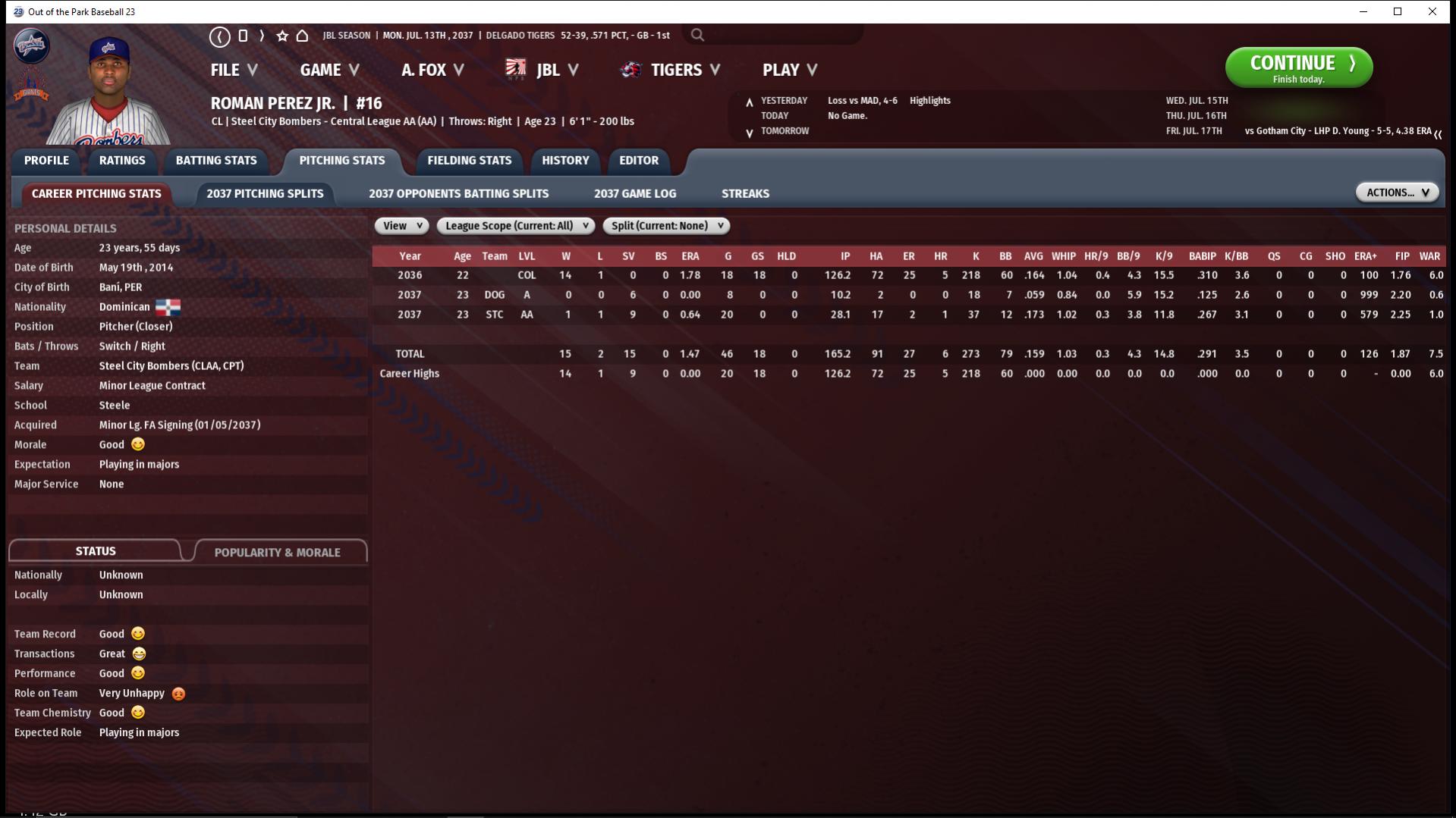 HC Andreas Raht - once a great 3b for Bird City. PC Edwin Jackson LF Sigismund Fried, LAD 4x AS 1b Erik "Magneto" Lensherr - a great young 1b. HC Tae-song So