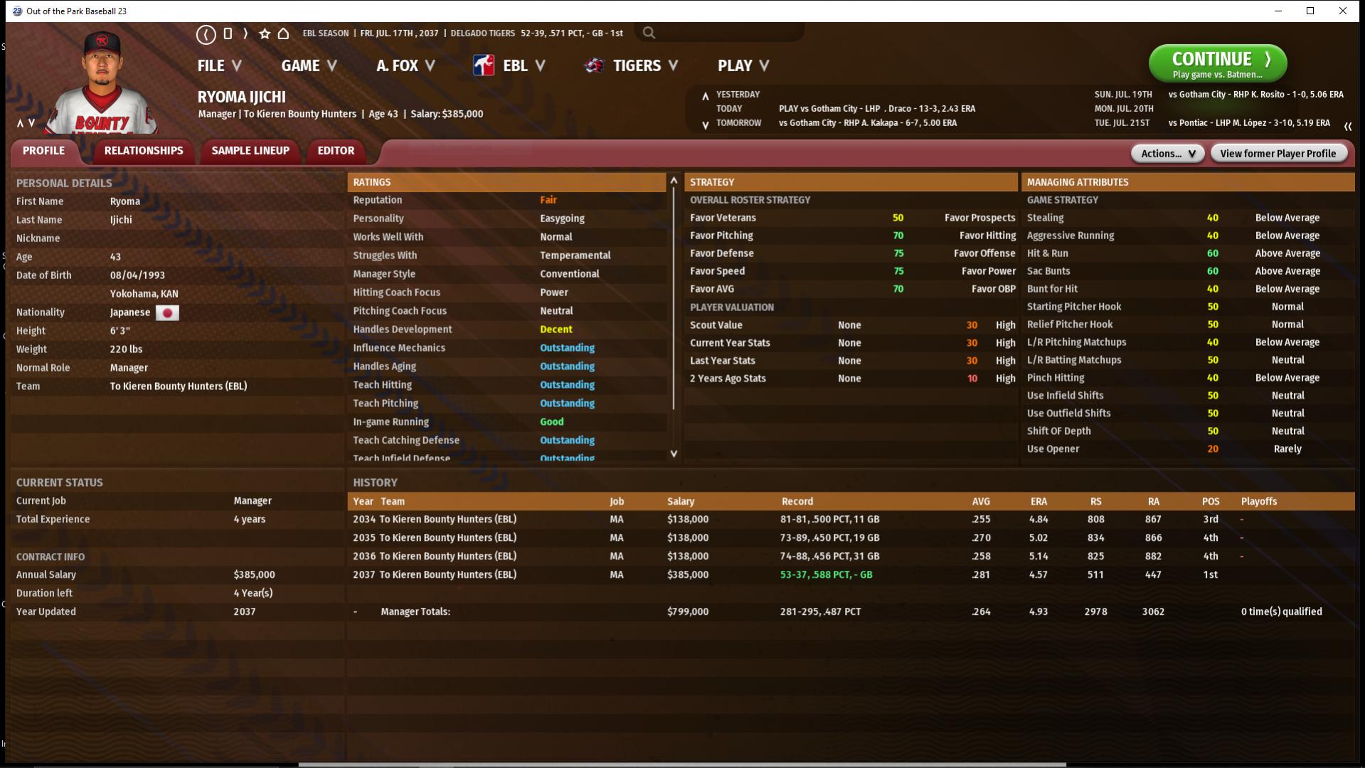 HC Kenji Johjima, EVE MGR Yasutoki Komatsu, NY MOTY in 2035 MGR Ryoma Ijichi, TOK TOK is in 1st. MGR Hirotada Inoue, AUR
