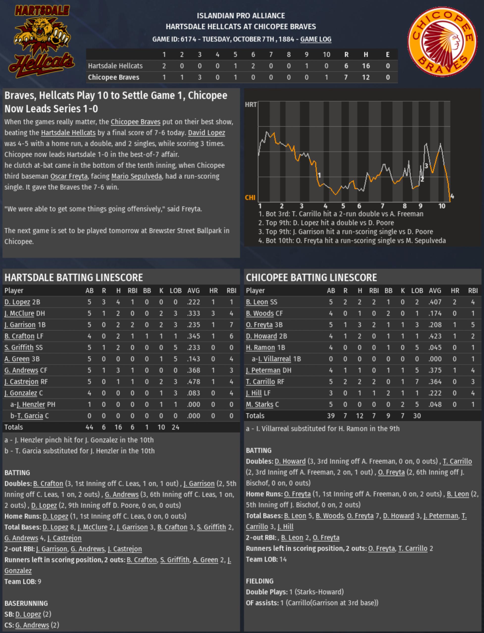 Denton City may need more pitching and better defense, along with better lineup protection for Freeman, at least, if they want to have better chances of winning Pro Cup titles before he retires. Freeman's now about 33 or 34 years old in your IPA, I think, so it's quite likely that he might retire before he's 40 or so years old, in terms of his playing career. Walton's not much younger than him, either, so both of them will probably be retired within the next five or so years, more or less, at most, if memory serves me correctly.