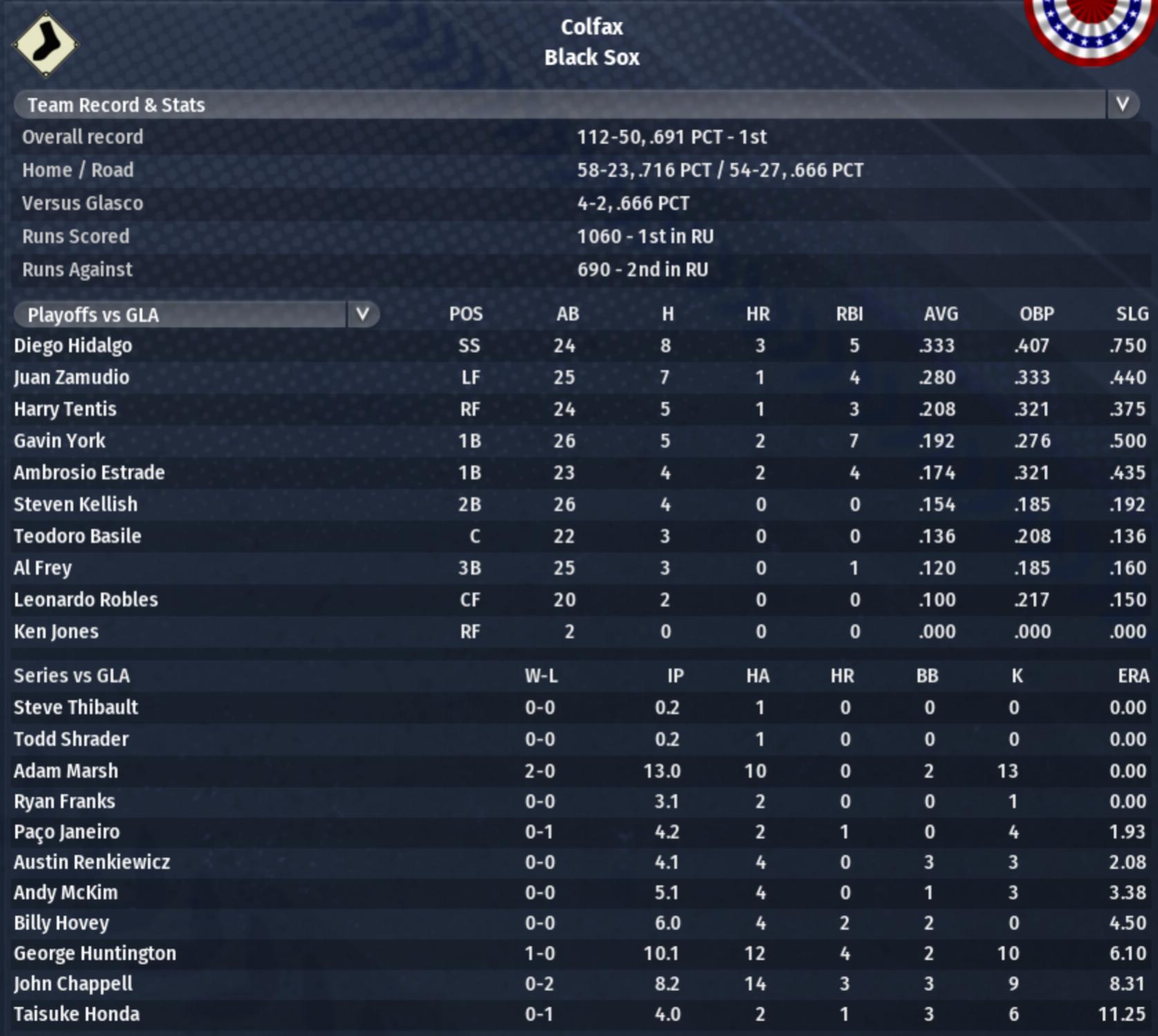 As for South Fork, the one spot where they are weak is baserunning, and there were several instances in the series vs. Hartsdale where they were thrown out on the basepaths, and that really hurt them. In one game, South Fork was down by two runs in the 7th inning with no outs. Jeddy Holmes hit a leadoff double but was thrown out at 3rd trying to leg it into a triple. It proved to be a huge factor in the game as South Fork lost a close one in the end. I think that South Fork beat up on a lot of the weak teams, and when you win by several runs a bad baserunning blunder won't hurt that much. But bad baserunning decisions end up being disastrous against much better teams who are rival playoff opponents. Last edited by jg2977; 08-25-2022 at 04:09 PM. |