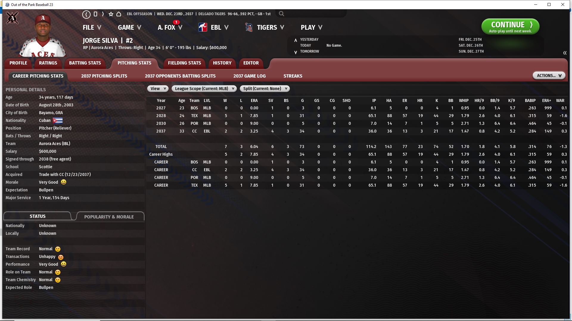 Aurora Aces traded a minor league SP to the Cloud City Thrantas for Rp Jorge Silva & a minor league C.