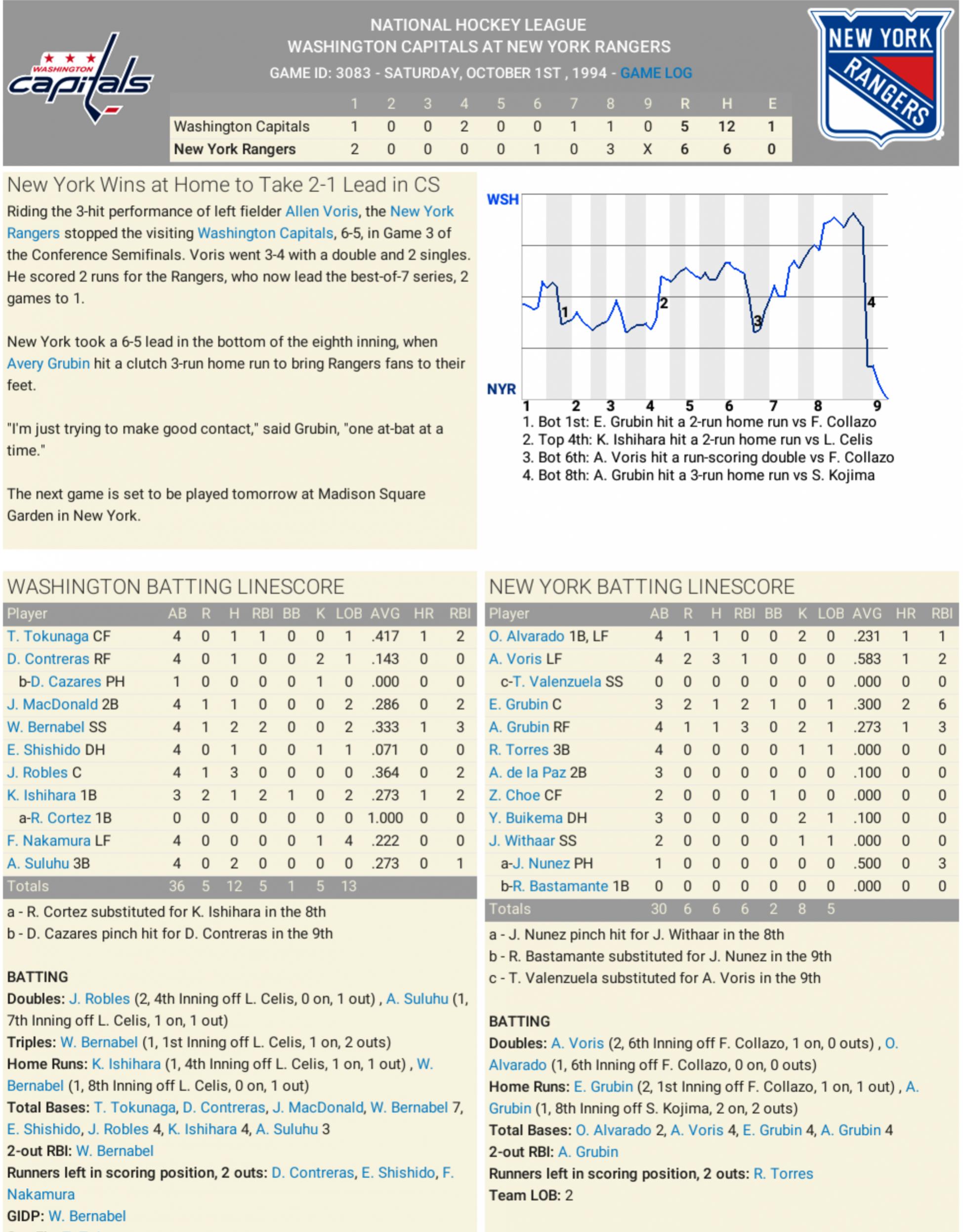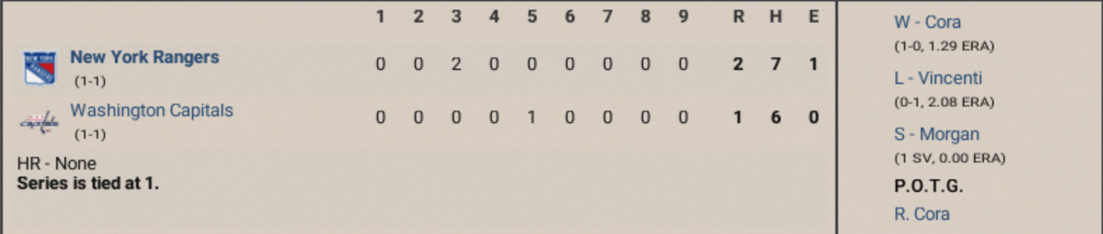 Rangers vs Capitals