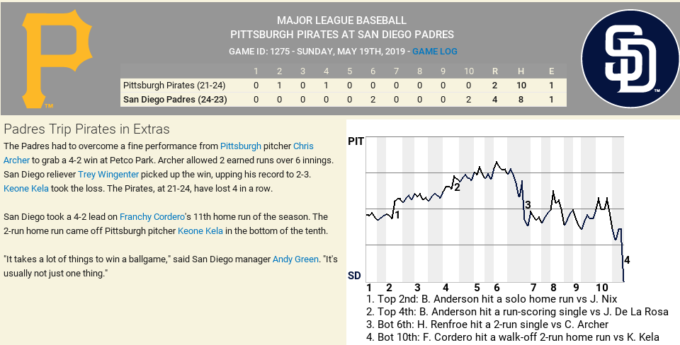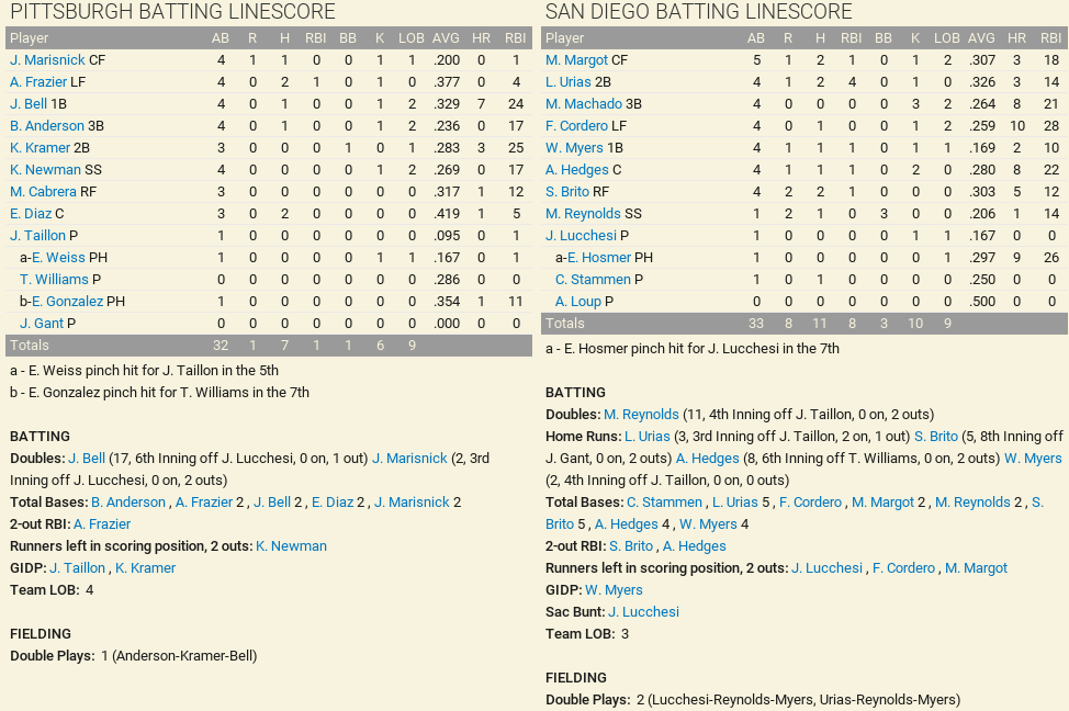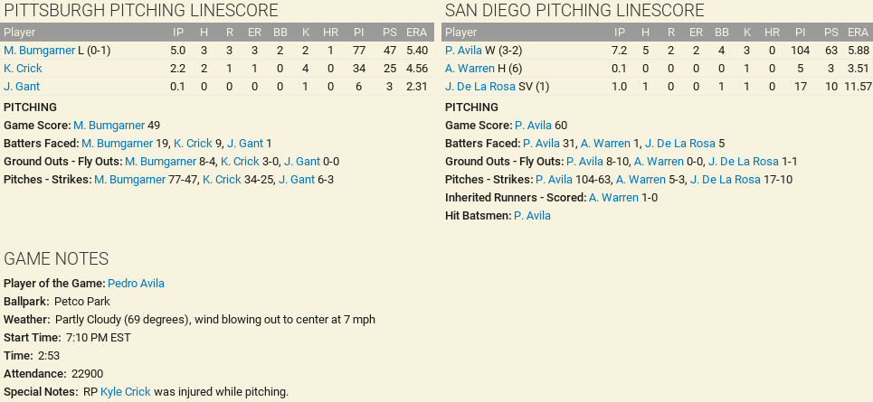 "The bewitching has begun" San Diego's opener and closer were good, the pitcher in the middle was GREAT! RP Strahm allowed only 4 hits and 0 runs in smothering the Pittsburgh offense.