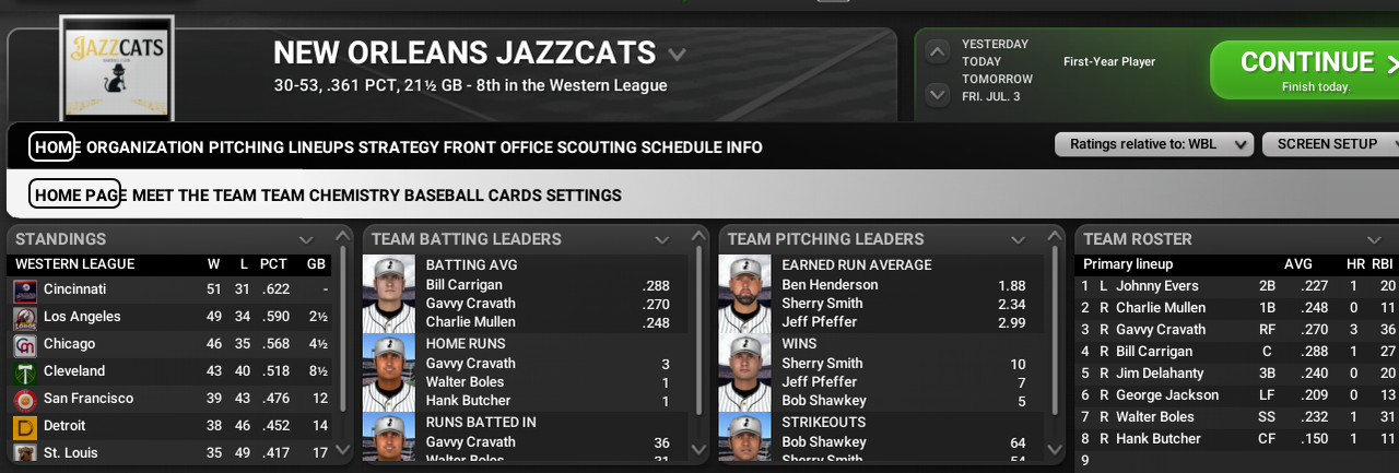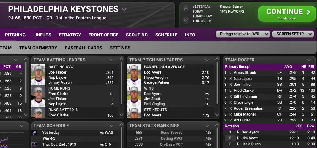 Honus Wagner and the Boston Battallions are in first place again and the 40 year-old DH is coming up on 3000 hits. He needs just 47 more to join that exclusive club. However, Wagner is still looking for his first World Series ring, could he get it at age 40?